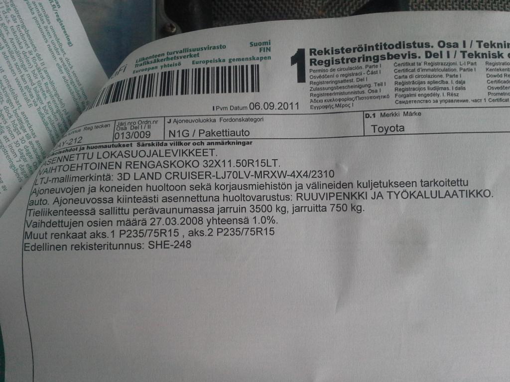 toyota lj70-86 ilman akseleita ja konettaMyyty autosta purettu akselit,tukivarret ja kone pois,laatikot paikoillaan. runko näytti nopealla vilkaisulla hyvältä. sijaitsee Heinolassa.hp.500,- 044-5355721Myyty Viimeksi muokannut synkkä : 11.02.2015 13:13 |