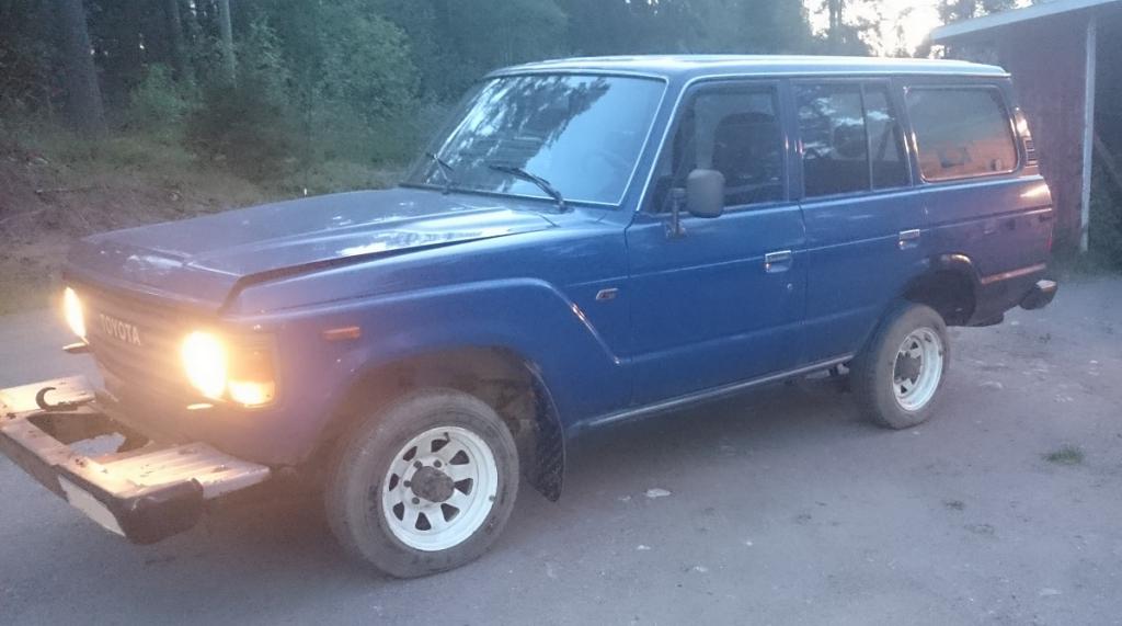 Toyota Land Cruiser HJ-61 '86Myyty Myydään 1986 kesäkuussa valmistunut HJ-61, jos joku haluaa ostaa ja laittaa kuntoon. Itellä ei tunnu aikaa riittävän ja noita leimattomia autoja tuntuu vaan kertyvän työlistalle ja tää auto olis kaikista järkevintä luovuttaa sellaselle kenellä on aikaa, tilaa, välineet ja motivaatiota. Auto on täysin ajokunnossa. Leima kuivahti alla olevissa kuvissa näkyviin reikiin rungon ulkoposkissa taka-akselin etupuolella. Auto jäi pois jokapäiväisestä ajosta viime joulun paikkeilla. Tää on H55F laatikolla, eli viislovinen nappineliveto. Moottorina on täysin räpeltämätön 12-HT. Ei lukkoakseleita, mutta takana on kitkalukko, missä on vielä aavistus pitoakin. Mittarilukema aavistuksen päälle 540 000, pitänee varmaan aika hyvin paikkansa.Kori on omasta mielestä tietysti aika hyvässä kunnossa. Apparin puolelta helmaa ei ole koskaan hitsattu, sinne saa laitettua kyllä pari tosi pientä paikkaa halutessaan. Kuskin puolelta oon sen jo tehnytkin, isoin reikä muodostui kitukasvuisen perunan kokoiseksi. Takaa helmakoteloita paikkailtu kanssa, toisella puolella olis semmonen pikku reikä vielä ton takapuskurin kulmamuovin takana. Runkoa hitsailtu mun ja edellisten omistajien toimesta. Ite oon tehny pätkän paikkausta vaihteiston kohdille sisäposken alareunaan kuskin puolelta sekä taka-akselin etupuolelta sisäposket uusiks (jonkun edellisen omistajan aikakaudella oli korjattu samat kohdat jollain todella ohuella pellillä, mitkä oli vaan parilla pisteellä ja koriliimalla kiinni ). Noi sisäposket korjasin vuotta aikaisemmin leimalle, kuin nuo ulkoposket mitkä nyt jäi leimalla puristamaan.Jarrut ei oo vielä ruvennu hapettumaa, käsijarru ei jumittele yms. Jarruputket on todennäköisesti joskus vaihdettu ihan viimesen vuosikymmenen sisällä, taka-akselista eteenpäin tosi hyvässä kunnossa. Taka-akselin päällä jarruputkissa vähän pintaruostetta tietyissä kohdissa. Takaperä laakeroitu ja takavetoakseleiden stefat vaihdettu joskus 420tkm paikkeilla, tuosta myös kuitit jossain arkistossa. Etuvetoakseleiden stefat hikoilee noin 2dl peräöljyä vuodessa ja mulla on vapaanavat kytkettynä aina koko talven läpeensä. Takaperässä ei minkään näköistä tarvetta shimmailulle, klappia on äärimmäisen vähän. Etuperässä on klappia aavistuksen verran (ehkä joku 1/8 kierros MUISTAAKSENI), mutta pariin kertaan oon pyöritelly irtonaisia hoojiin etuakseleiden etuperiä, ja niissä kaikissa oli klappia saman verran. Etukardaaniin vaihdettu etummainen ristikko. Takakardaanin takimmainen ristikko on hyvä niin kauan kun ei muuta akselin korkeutta, jos autoa korottaa joutuu uusimaan ristikon, koska sen ihan ääriasennot jumittaa. Kone ei huohota, nesteet ei mee sekaisin ja jäähdytysnesteet vaihdettu viimeksi viime kesänä, toissa kesänä jäähdytysvehkeet huuhdeltu. Öljyt pysyy tosi pitkään puhtaina ja ekan kerran joutuu lisäämään öljynvaihdon jälkeen siinä 5tkm tai 6tkm paikkeilla öljyä. Syyläri on muuten ihan hyvässä kunnossa, mutta se näköjään tiputtelee nestettä alaosasta yhestä saumasta. Täysin korjattavissa jossain paikallisella syyläripajalla. Ilmanputsarin ja ton ahtoputkitukkihärvelin välinen kumiletku vaihdettu heti kun auton ostin. Turbon ja tukin kumiletkut on aikojen saatossa kutistuneet, ne vois vaihtaa vaikkei ne olekkaan halkeilleet. Turbon paluuletku vaikuttais hikoilevan. Suodatinjalka hikoilee öljyä aavistuksen, muuten kone on ihan kohtuu tiivis. Kytkin, paineasetelma, painelaakeri ja silmälaakeri vaihdettu 517tkm kohdilla (Aisin vakiovehkeet). Perä- ja jakolaatikon öljyillä ajettu pikkusen päälle 20tkm, päälaatikon öljyt vaihdettu 501tkm ja nyt ennen viimeisintä katsastusta. Jarrunesteet on nyt sen 2 vuotta vanhat, kytkinnesteet päälle 1 vuoden. Viat tiivistettynä: - Ne rungon reiät leimalle - Syyläri vuotaa sitten kun auto lämpenee - Vitosvaihde putoaa 80% varmuudella pois päältä jos löysää vedon. Vaihteella ei kuulu mitään ääniä ja se menee päälle nätisti rutisematta ja survomatta. Päälle laittaessa pitää toki olla vähän vetoa. Ite oon ton kanssa tullut toimeen. Sitäkin on tällä palstalla spekuloitu mistä voisi johtua. - Etukardaani alkaa jyristämään jos ajaa navat kytkettynä yli 90km/h (mittariin lähemmäs satasta) (ei lähde hampaat suusta tai mitään, mutta jos on tosi hyvät täristämättömät renkaat sen huomaa kyllä) - Takaluukun yläosa kaikaa jo huomiota - Jakolaatikosta hikoilee vetoakselin stefa, mittakaava on sellainen, että se vähä öljy mitä sieltä tihkuu on kerännyt itseensä semmosen pölykerroksen, eli ei mikään iso vuoto - Kuvissakin näkyy, että takahelmasta hikoilee dieseliä, syynä lienee se tankin huohotus makkarapaketti, en ole tutkinut asiaa sen tarkemmin, koska auton alle ei tule lätäkköä. Jos jaksoit lukea tähän asti, niin nyt päästään sinne hintapyyntiin ![]() Hinta: 2400€ Ja tää on sitten noilla 31" katukuvion renkailla 7" suorilla mangelsseilla, 2 kumia on 2 kesää ajetut uutena ostetut, 2 kumia on jotku tosi jäykät pinnotetut renkaat. Pintaa noissa on vuosikausiksi. 195 leveillä siirtopyörillä ja onkohan noi 6" mangelssit hinta on 2200€ 235/75R15 talvirenkaat 8" mangelsseilla = +200€ Ostaja tuo omat renkaat = 2000€ Jos yhtään kutkuttaa, niin soita tai laita täällä yksityisviestiä ![]() Puhelinnumero on 040 seittemän seittemän seittemän 2208 Jos en kerkiä vastaamaan, laita vaikka tekstiviestillä että soitit hoojiista, niin palailen asiaan heti kun on sopivaa rakoa! Jos on jotain kivaa kalustoa vaihdossa, niin voin vaihtaa aavistuksen kalliimpaankin (väliä max 1500€). Etusijalla kaikki Toyota merkkinen. Mutta ei enempää katsastamattomia autoja, kiitos