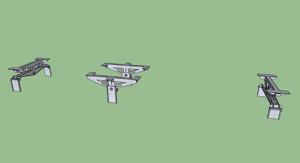 Kontin apurunko olis siis vain kolmesta kohdasta rungon päällä per puoli. Välissä "jalat", joissa kumityynyt ja niiden kohdalla jouset. Eri kohtiin runkoa vielä pystyohjureita, että koppi ymmärtää laskeutua joustettuaan takaisin rungon päälle. Nouseeko ajatuksia? |