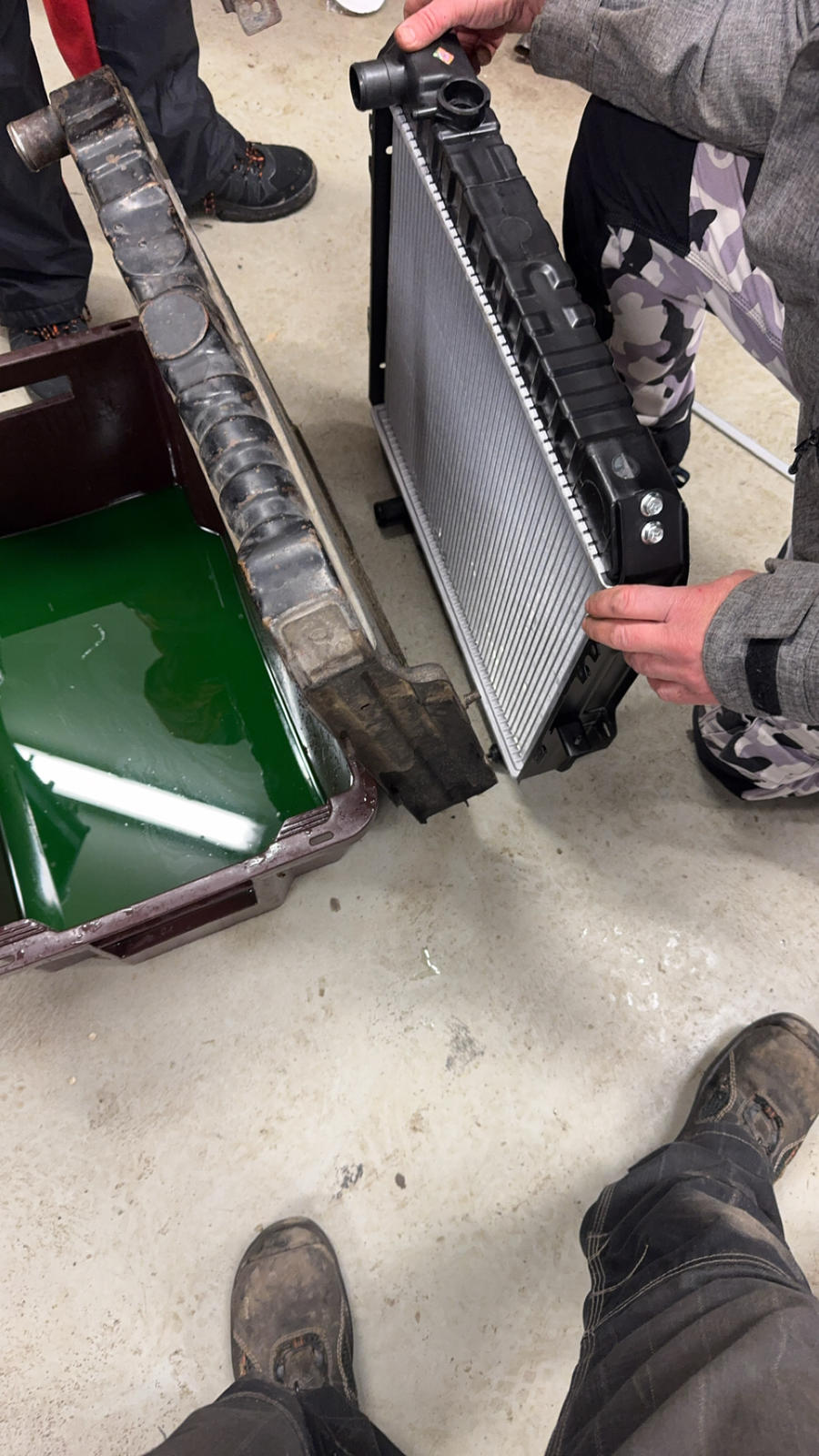 No sitten itse asiaan. Tänään saatiin laajentunut termostaattiremontti päätökseen. Kovin vähän tuli kuvia napsittua, mutta ideana oli LJ alkuperäisen syylärin etukiinnikkeiden hitsaaminen hiluxin syyläriin jossa takakiinnikkeet passasivat suoraan. Hitsauksessa ja muussa oheistoiminnassa paloi noin puolipäivää. Onneksi mitat oli sovitettu hyvin ja jäähdytin oli helppo ruuvata paikalleen. |