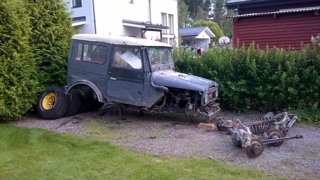 Unimog 411 valuakselit Toyota BJ-40 korilla.Myyty Unimogin kapeat valuakselit+ unimogin vaihteistosta tehty jakolaatikko+ SM420 vaihdelaatikko+ 305TBI moottori. Näitä soviteltu BJ-40 runkoon johon löytyy lisäksi kori jossa hyvä turvakehikko ym. Lisäksi löytyy unimogin kokonainen vaihteisto ja varmaan jotain muutakin osaa mukaan. Kone ollut muutama vuosi sitten käyntikuntoinen, mutta tarvitsee varmasti käydä läpi. Samoin akseleissa tekemistä. Ja onhan tossa muutenkin jotain pientä näpräämistä vielä jäljellä![]() Hinta koko kasalle 3500 eur ja Vantaalta löytyy. Puh 050-4463329. Myyty Viimeksi muokannut MK : 07.10.2017 10:24 |