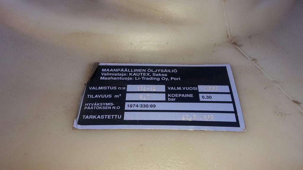 2000 litran öljy säiliöMyydään Myydään2000 litran öljysäiliö. 2350x760mm ja 1720mm korkea. Kuljetus voi onnistua Kokkola - Närpiö Hinta 300€ Puh. 0503452650 markus_syrjala(at)hotmail.com Myydään Viimeksi muokannut markuss : 18.05.2017 22:28 |