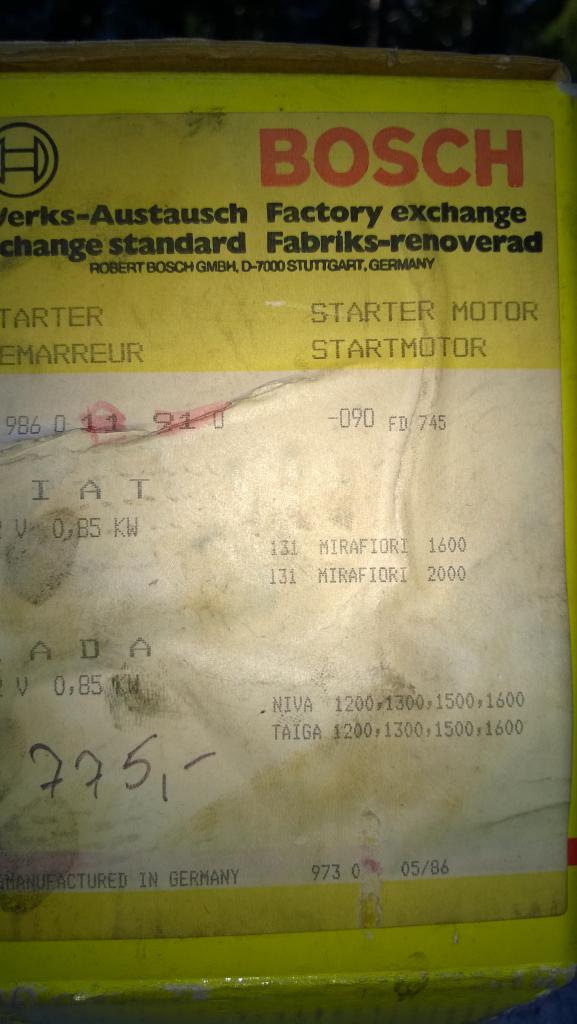 Lada Niva/Fiat Mirafiori Bosch starttimoottoriMyydään Uusi startti vuodelta 1986. 100€. Raahe. YV:llä tavoittaa.Myydään |