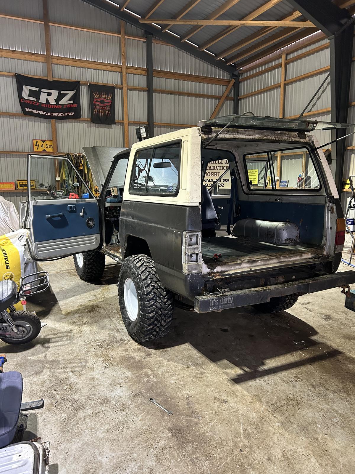 Musta pelaa ja liikkuu niin saa väistyä näpräilyltä vähäksi aikaa. Portaalia sais ruveta laitteleen edellisten ajojen jäljiltä… takaovi korjata kun nyt liinalla kiinni. Vaihtaa uutta peltiä eli lokasuojat, ovet ja takanurkat oikoa tai tehdä kokonaan uudestaan. Helmaan/takapyörän koteloon tuli nyrkin kokoinen reikä Asis suunistuksessa.