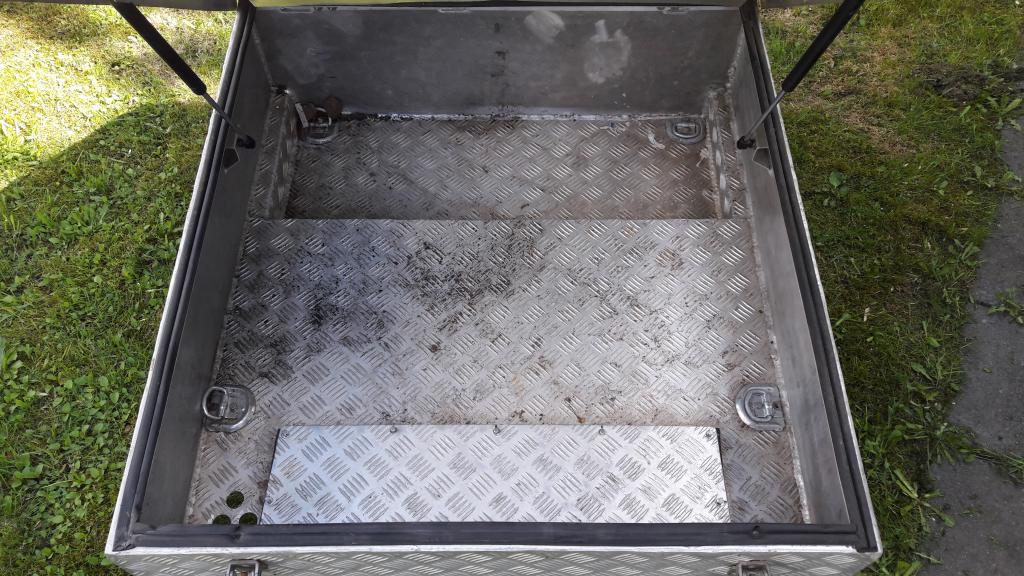 |   Alumiininen laatikkoMyytyHiluxin muutosten takia myyntiin ylimääräiseksi jäänyt alumiininen "säilytys/työkalu/tai mikä tahansa laatikko". Pituus 98cm, leveys 92cm, korkeus 24cm, syvennyksen kohdalta 30cm. Kuvista selviää lisää. Materiaali 3mm alumiini, Nyt materiaalin hinnalla. 200€ - > 100€. Löytyy Kouvolasta ja kulkeutuu samaan rahaan tarvittaessa PK-seudulle ja Lahteen. Myyty Viimeksi muokannut Jp : 26.09.2018 15:52 |