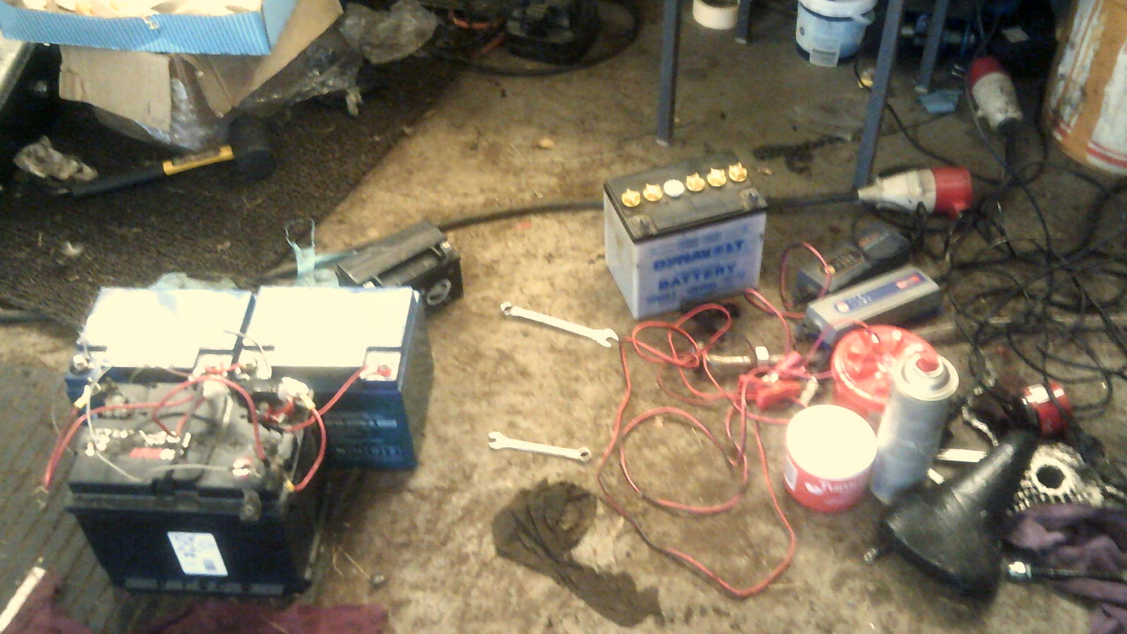 Kävin katsomassa ja siellähän se kone oli.....Kolme akkua oli vedetty sarjaan...Oli joku rele välissä ja painonapilla tais olla virransyöttö.