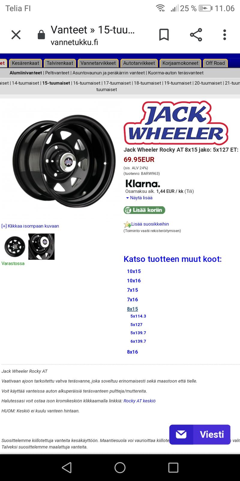 | Myyty Jack Wheeler Rocky AT 8x17" peltivanteet | Anger | O/M/V Renkaat ja vanteet | 0 | 05.09.2019 09:28 |