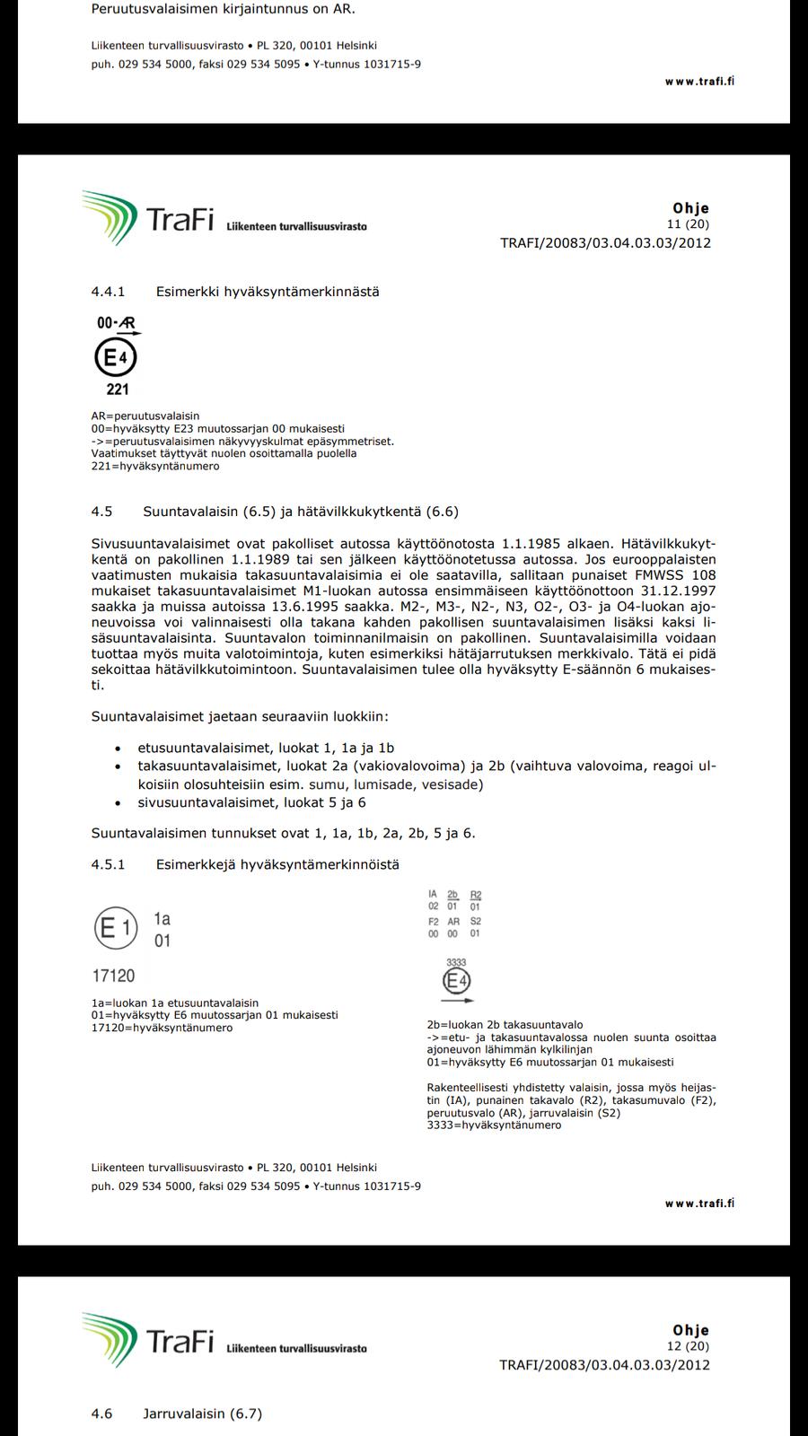 1 etuvilkku (yli 40mm ajovaloista) 1a etuvilkku (20-40mm ajovaloista) 1b etuvilkku (alle 20mm ajovaloista) 01 tarkoittaa muutossarjaa, eli tyyppihyväksyntäasioita. |