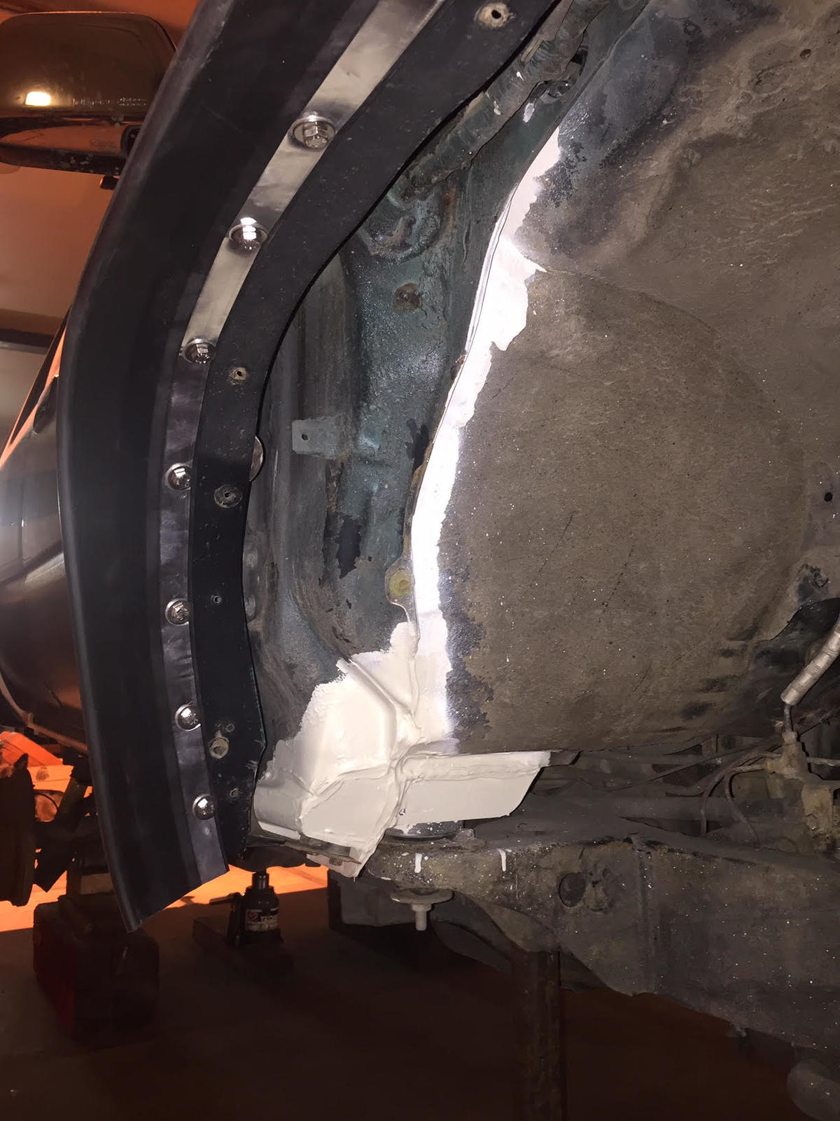 Noniin takakaaret sain hitsattua ja vetästyä ekan kerroksen pohjaväriä. Inerta primer 5 laitoin. Kannattaiskohan tuonne pyöränkoteloon mitä vielä laittaa päälle ennen massaa??