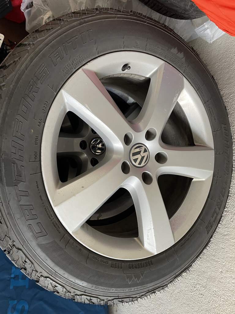 Vw Touareg renkaat ja vanteet 265/55/20 A/TMyydään Myydään 2000km ajettu renkailla, 5x130 jako et60 renkaat 265/55/20 a/tMahtuu pyörimään vakion alla. Hp:700€ Espoo Myydään