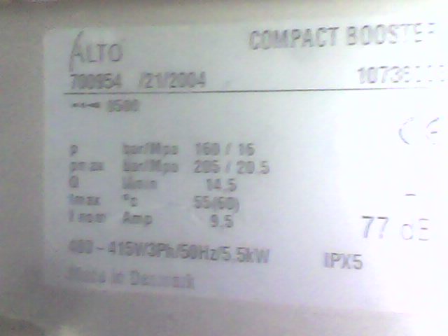 painepesuri Alto Compact booster, kiinteästi asennettava, VIALLINEN, rosterikoppa, moottori toimii, pumpussa laittoa männät ja kieppulevy, ei letkua eikä pistoolia, 100e