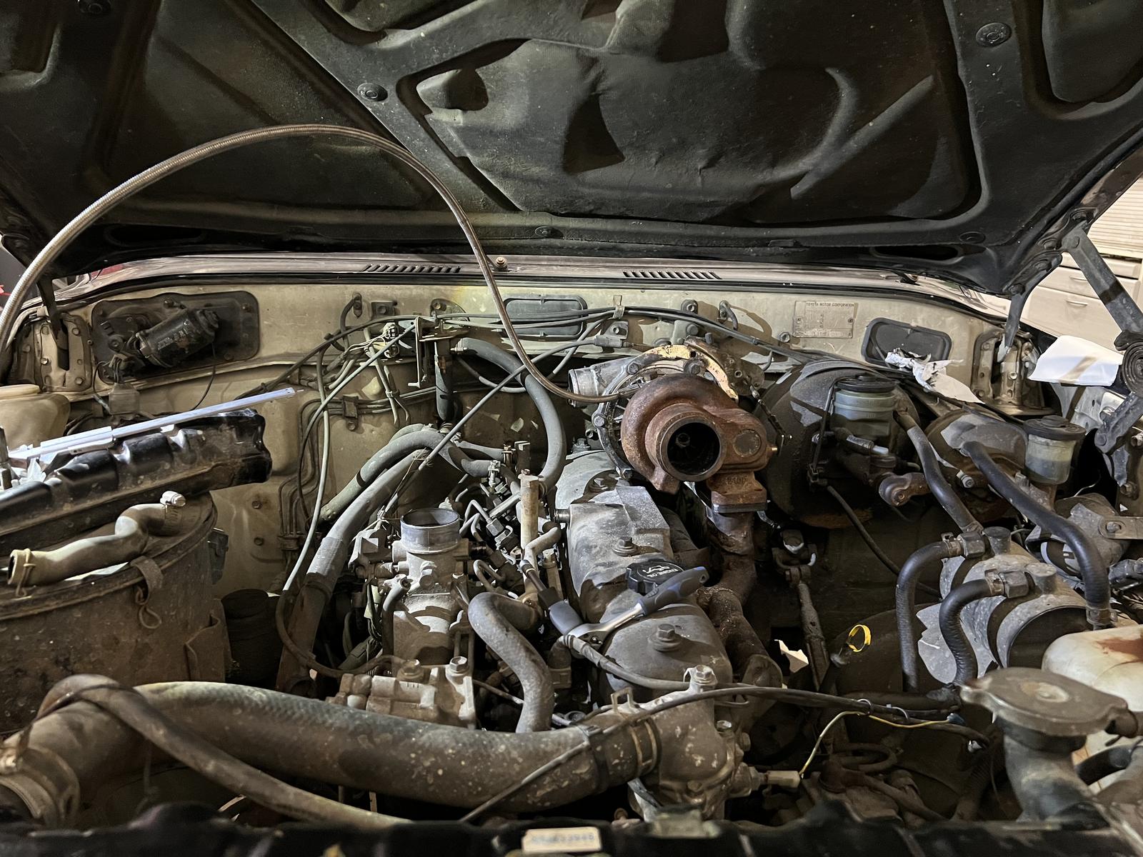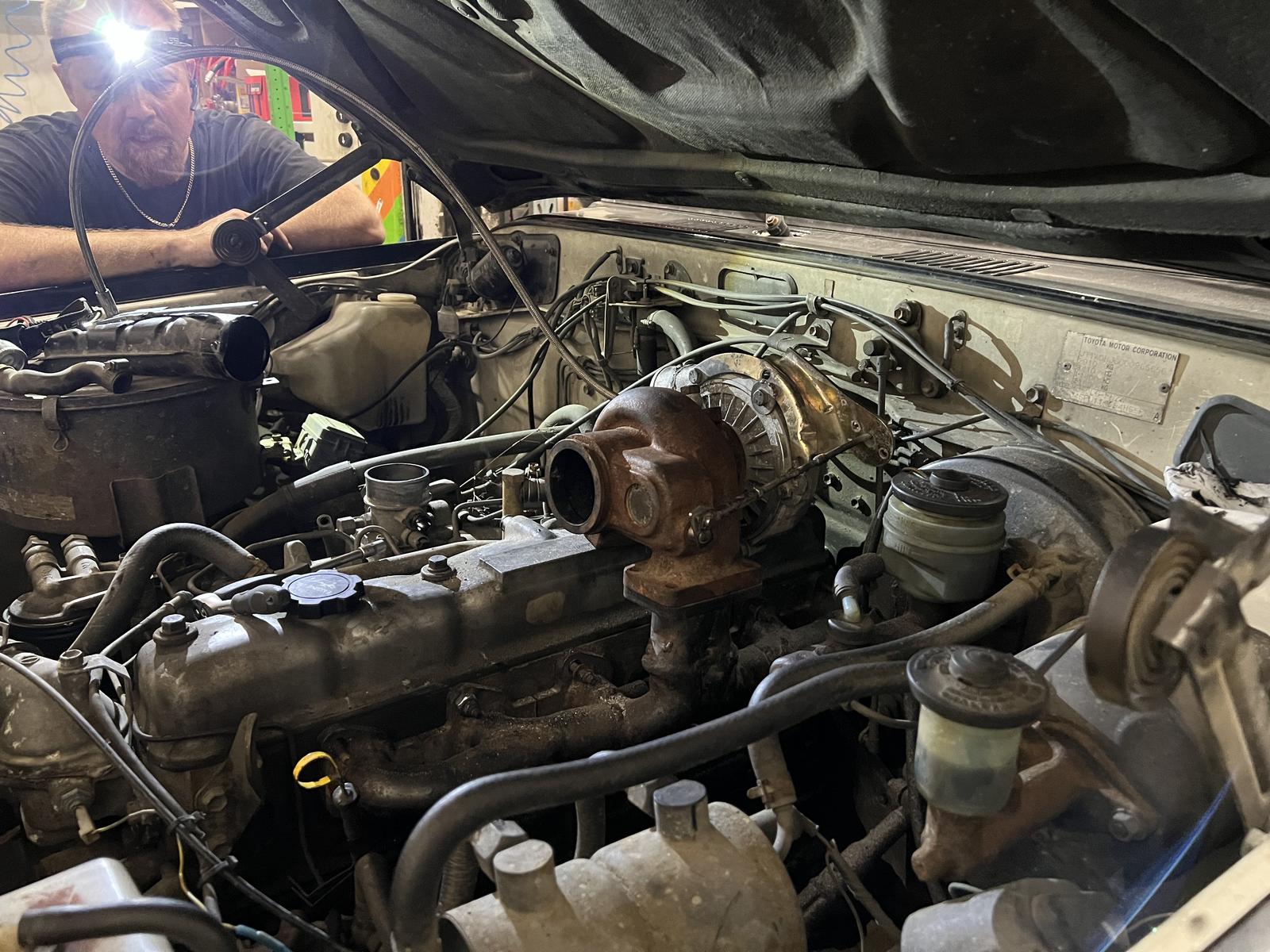 Turbon asennus on hyvällä mallilla. Huomenna käydä letkut ja putket niin vois ehkä jo savut ottaa jos kerkeää laittamaan kaikki paikalleen.