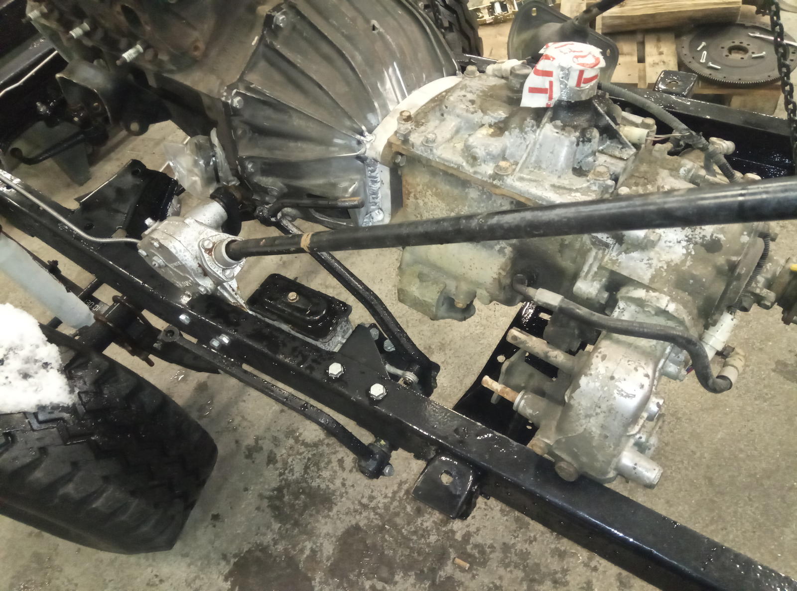Tekniikkaa on myös soviteltu. Voiman ulosotto pitää heittää pois sekä vaihteiston kannatinpalkkia laskee alas päin. Etukardaanin lähtö ottaa aika rajusti palkkiin kiinni. Kardaanien kulmat saadaan myös hieman paremmiksi kun vaihteistoa lasketaan alas.