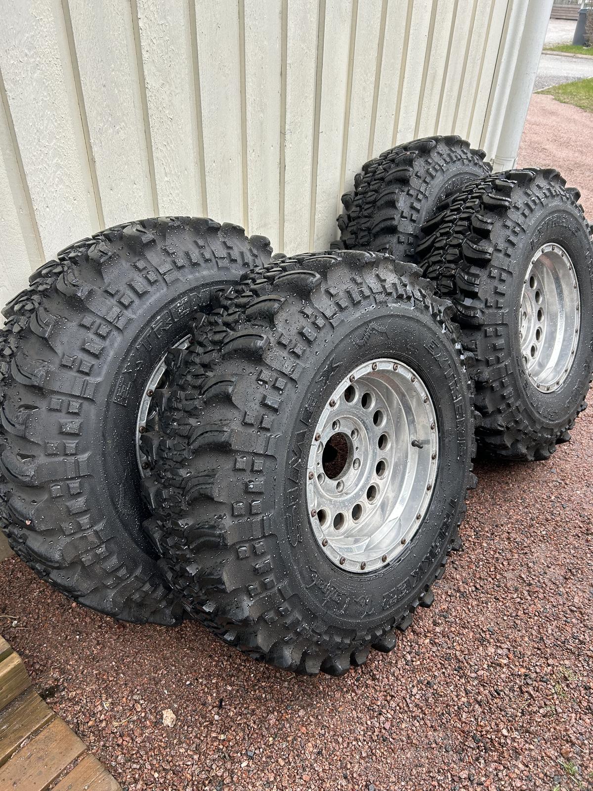 35” Simex Extreme TrekkeritMyydään 4kpl 35” 10,5 r16 Simex Extreme Trekker renkaat 8” leveillä Eagle Alloy 101 vanteilla. Et -20.Jako 139,7x6. Nappulat leikelty auki. Pintaa vielä reilusti vaikka käytönjälkeäkin löytyy. Hp 700€ Myydään