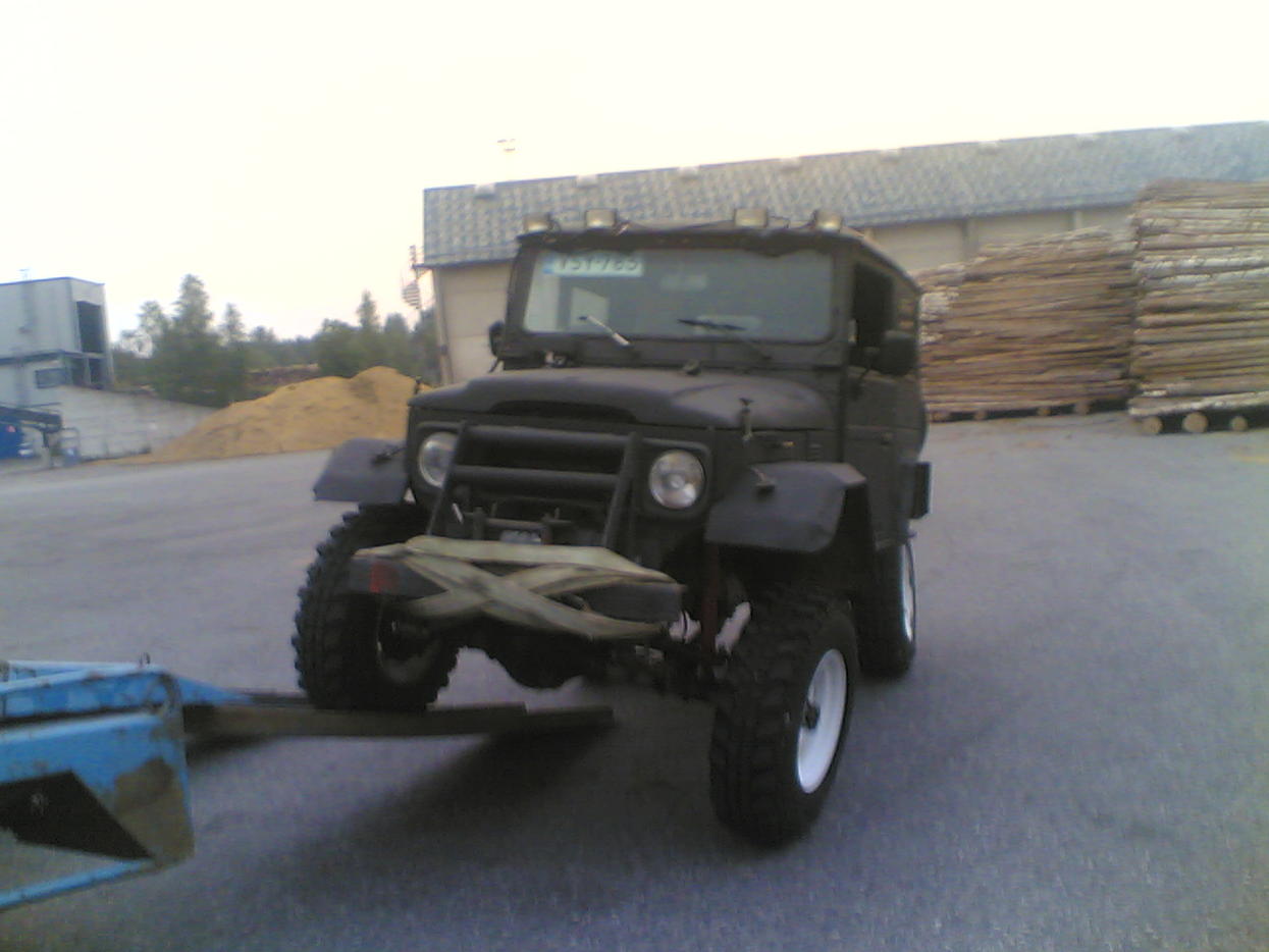Bertta työautoksi (käyttöehostelua)Tuollainen kuvankaunis Bertta iskeytyi tonteille. Tarkoitus olisi tehdä tuosta työauto ja saatampa joskus ihan vaan kevyesti pyörähtää safaroimassa, mutta silleen vähän vaan.. Kun leima joltain myötämieliselta inssiltä joskus (säälistä) heltiää, tulee laitos pyörimään kehä III: n sisäpuolella lähes päivittäin katukuvaa komistamassa. ![]() Valmiiksi tuohon oli jo rakenneltu SOA, ohjaustehostin, levyt eteen, aussi taakse ja muuta pienempää. Ja tietysti pitää mainita erikoismaalaus (telalla/sutilla mattamustaksi). ![]() Leima on päässyt kylmäksi.. Työn alle joutuu ainakin jarrut (edestä puuttuu satulat), takavalot (puuttuu) etuvilkut (puuttuu). takajousi (katki), Flekti (puuttuu) ja jotain muuta pientä ehostelua. Myöhemmin sitten vähän ahdinta, vinssiä taakse ja suojaavaa rautatavaraa.