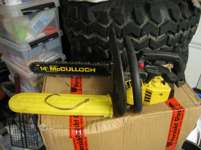 Viallinen moottorisaha McCullogh PM310Myyty Näppäränkokoinen moottorisaha josta ketjujarru poikki. Se on toi kuvassa olevakiiltävä kiemura. Saha toimii, mutta vaarallinen koska ketjujarru ei tomi. Vaarallisuus korostuu koska saha "kirvesmies saha" josta puuttuu takakahva, se on sahan päällä ja käpälät on aika lähekkäin sahatessa. Varaosien saanti voi olla vaikeaa, mukaan tulee varaosaluettelo ja ohjekirja. 20€ PK-seudulla, soita 040-543 8733 Myyty