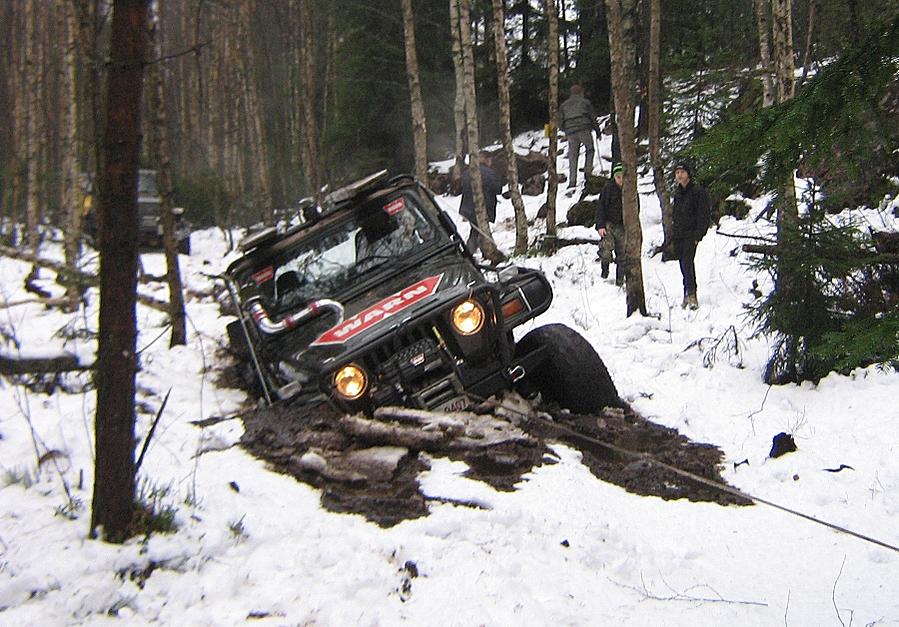 Oli kostea pikkujoulu, mutta tästä ei seuraa päänsärkyä. Jeepitkin saatin yhteiskuvaan. Pimeällä eksyimme tosi pehmeälle reitille. Siis syvemmälle kuin kuvassa. Vaivoin päästiin pois.
