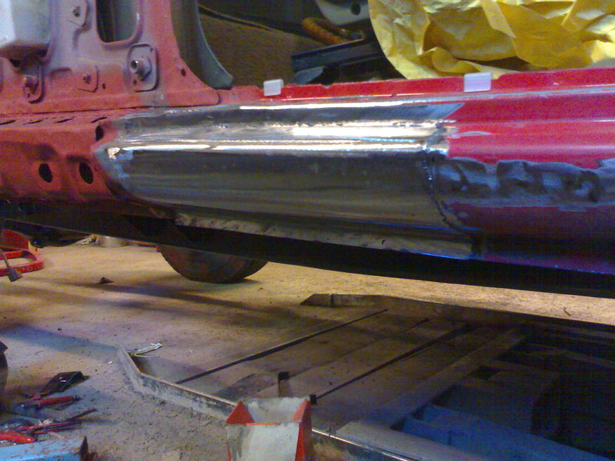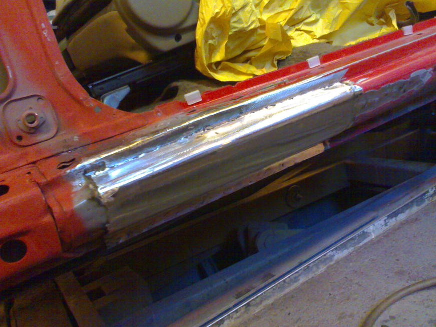 Kyllä nuo kotelot ja runkopalkit suojataan niin sisältä kuin päältäkin. Eli homma on sen verran edistynyt että kylkipala on kiinni ja sisähelma oikaistu. Tuli siinä samalla tehtyä uutta helmapeltiäkin, kun vanha oli niin kurtussa. Tuli mieleen että olisko tarvinnut tehdä helmat hieman orkkista tukevammaksi, ei harmittais niin kovin jos jää johonkin kantoon kiinni