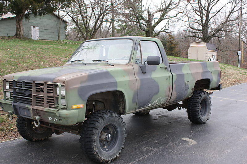 Model: '83-'86 GM M1008 CUCV Engine: 379ci (6.2L) Detroit Diesel V8 engine Power: 155 hp (116 kW) @ 3600 rpm Torque: 257 lb·ft (348 N·m) @ 2000 rpm Compression Ratio: 21:1 Transmission: THM400, 3-speed automatic Transfer Case: NP-208 (unsynchronized) NP-205 Used in trucks requiring PTO Front Axle: Dana 60 Most were open except M1028's which feature Spicer Trak-lock (limited slip) Rear Axle: 10.5" Corporate 14 Bolt Differential, with a Detroit Locker Dana 70 used in trucks with dual rear wheel modification. Axle Ratio: 4.56:1 Wheelbase: 131.5 inches GVW: 8,800 pounds Curb: Weight: 5,900 pounds Tires: 235/85R-16E Fuel Capacity: 20 gallons Fording Depth: 20 inches Approach/Angle: 42 degrees Top Speed: 55 mph (military rating)