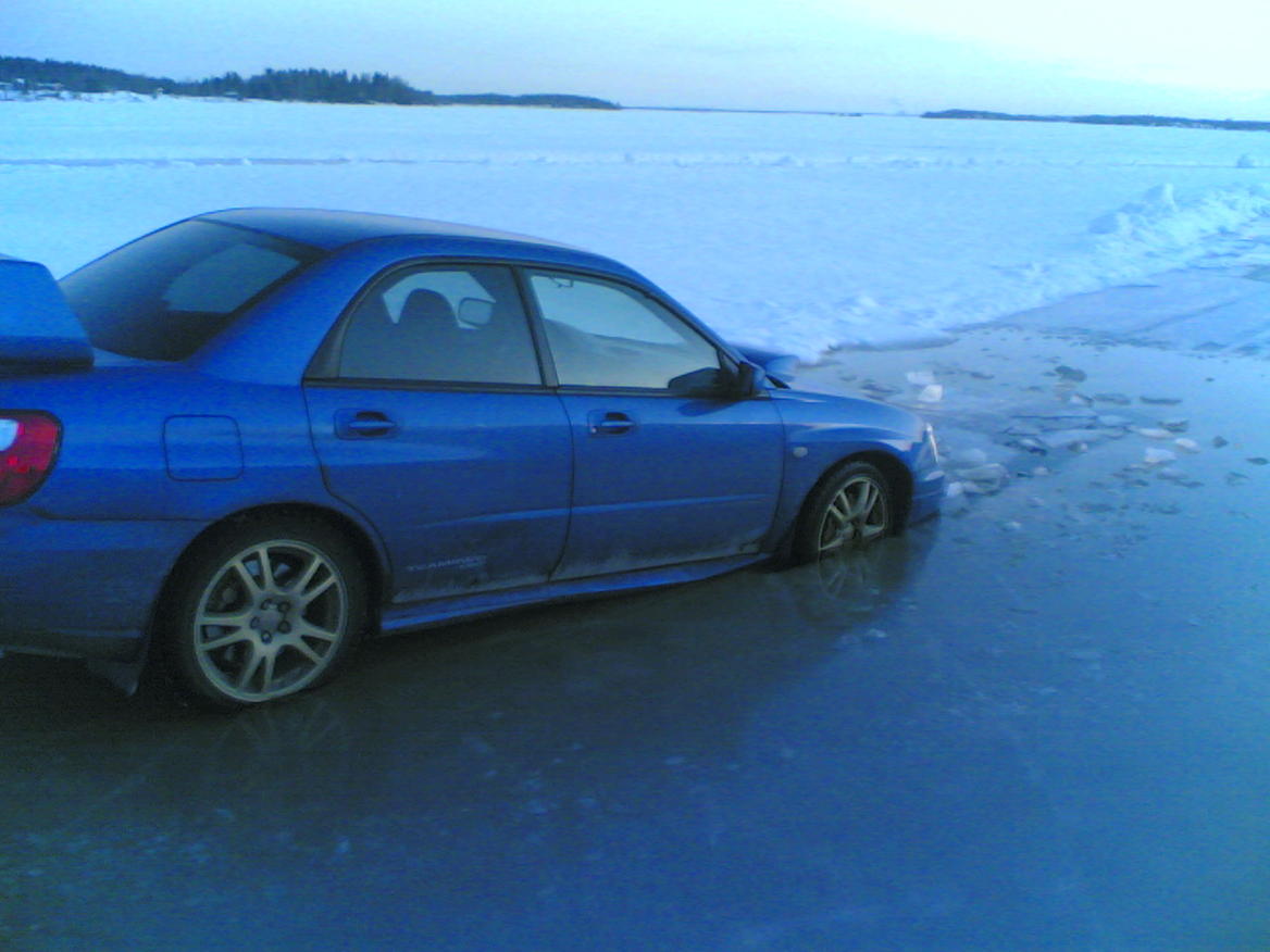 Subarusta meni eturenkaat(pyörät,kumit,rinkulat,rattaat) läpi jäästä kun pysähdyttiin, auto jotenkin tuntui vajoava ja avattiin ovet, vettä tuli railoista jäälle ja samantien etuset uppos jäihin. Pakkia päälle ja avantoa syntyi sitämukaa kun peruutti...