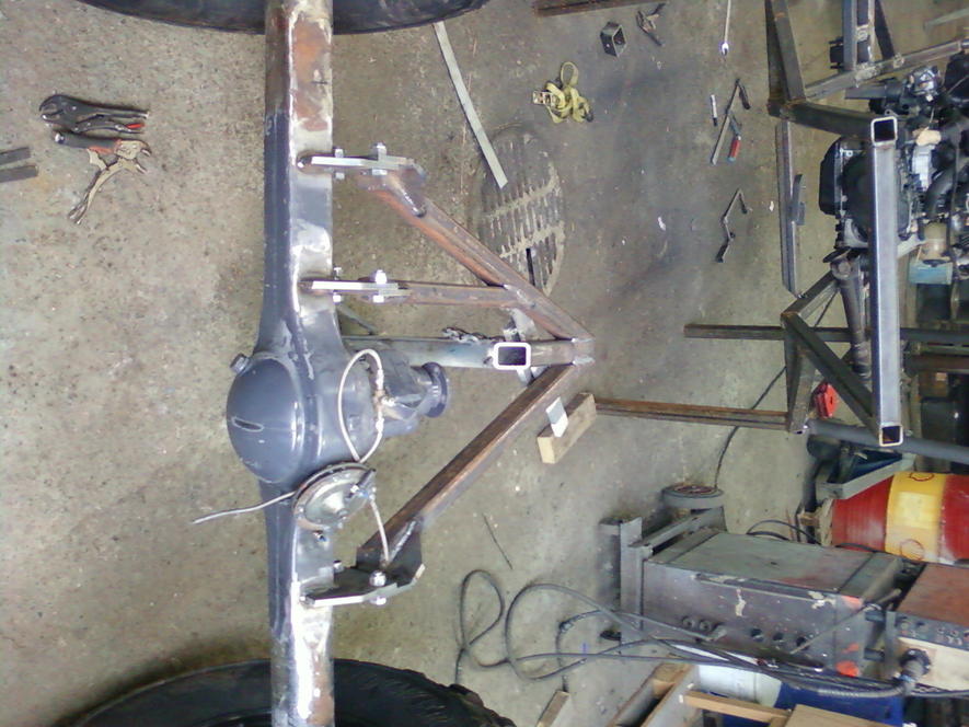 nyt on akselit laitetu paikalleen ja akseliväliksi tuli 254 cm alustavissa jousto kokeiluissa näyttäis ettei ihan vituiksi mennyt....