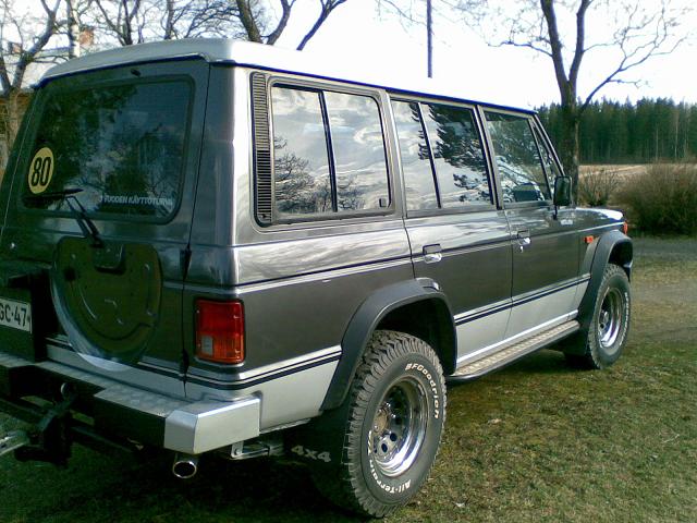 Pajero 2.5 TDIC -90Myydään Huoltoauto 1+1. Säännöllisesti huollettu.31/10.5-15 all terrain renkaat alla,pintaa n.80%. 3300kg saa vetää jarrullista kärryä.Ruostevauriot korjailtu rungosta,suhteellisen hyvä kuntoinen.Vaihteisto on isompaa mallia eikä pidä ylimääräisiä ääniä,kitkalukko taka-akselissa.Kuvassa näkyvää vinssiä ei ole.Rengaskoko muutettu otteeseen.Auto on väliaikaisessa poistossa liikenteestä,käynti katsastus konttorilla ja autolla saa ajaa.Seuraava katsastus Joulukuussa 2010.2500€ tuon alle en myy. Lisätään vielä.Kauko ohjattava keskus lukitus.Jäähdyttäjän tuuletin muutettu tupla sähköpuhaltimiin. Myydään