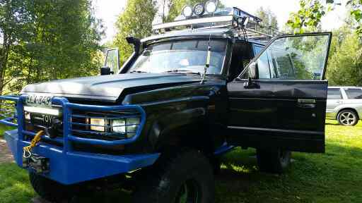 ex MONSTER energy HJ61, eli Kierrätystölkki.Voihan maastoauto ! Kaikkihan alkoi siitä, että erehty kaverin kyytiin sorakuopalle... Pikku Subaruilla tuli leikittyä mukana, 2 " korotuksia ja ISOJA renkaita alle sehän öljypohja pääsi 30 cm ilmatilaan ja talvella alkoi kaverin HJ61:n oleen ihmeissään jäykillä auraavilla akseleilla umpilumessa, kun pikkunen vaan porhalsi.Kivikossa annoin sitten periksi, hiekalla pysty kiusaa, mutta saman tasoisista autoista alkoi syntyä ajatus. Ja mainonnan uhrikin minusta vielä tuli ( kuva 5 ).Ajatuksena oli, joko edistynyt 4-veto käyttö / harraste autona ( lähinnä Toyota tai Land Rover sen hetkisen tarjonnan perusteella ), tai halpa käyttis ja lukkoakseleilla oleva maasturi. Toisaalta vaakakupissa paino myös kaveri automalli, eli olis tietämystä ennestään ja varaosia voisi vaihtaa keskenään jne. Tämä rajasi sitten osaltaan valikoimaa aika paljon ja lopuksi käsistä löytyi Suomea kiertänyt ja omistajia enemmän ollut, kuin laatikossa tölkkejä oleva HJ61. Ja tästähän se ilon kyynel ja sielu verellä yhteiselo alkoi. Että terveisiä vaan Savoon.