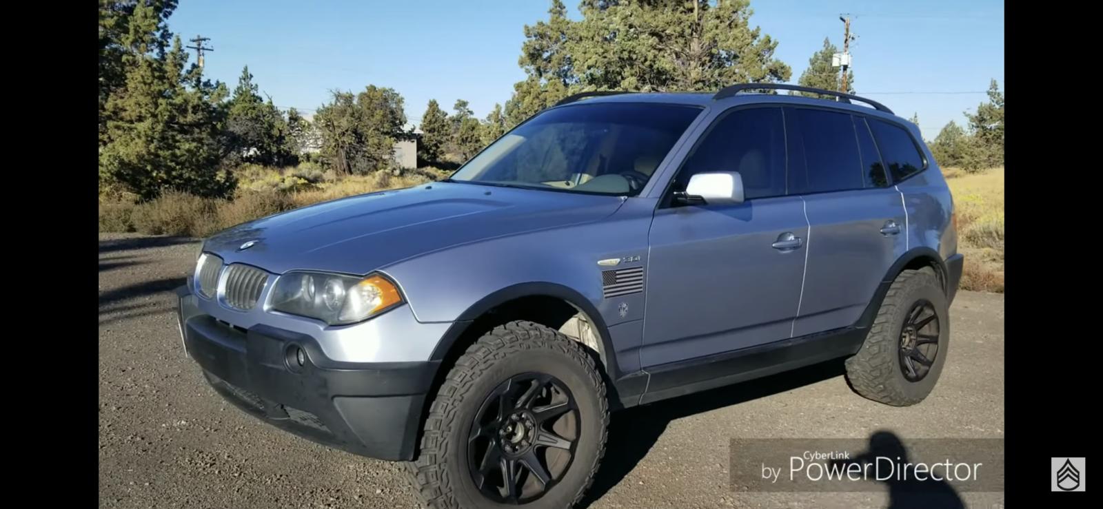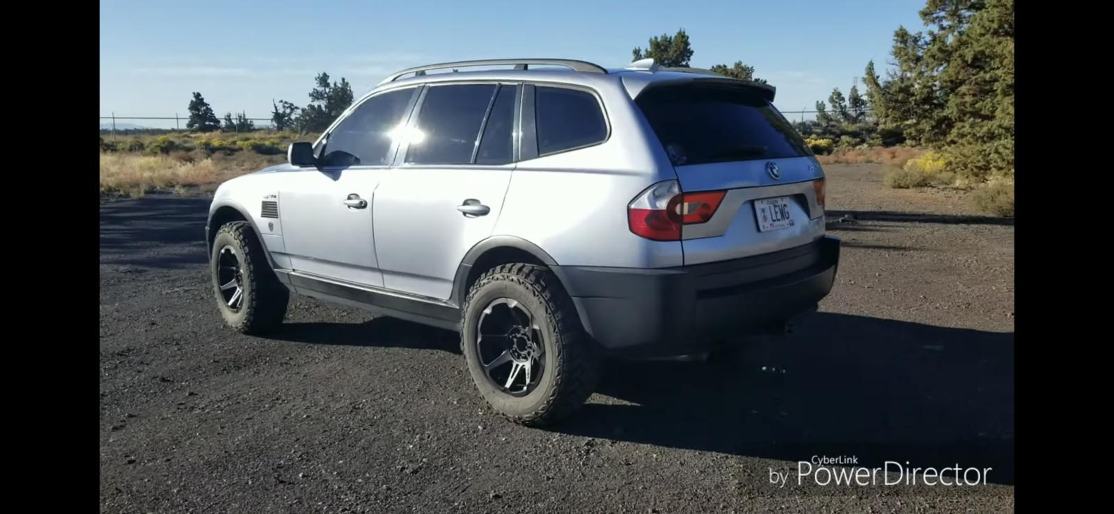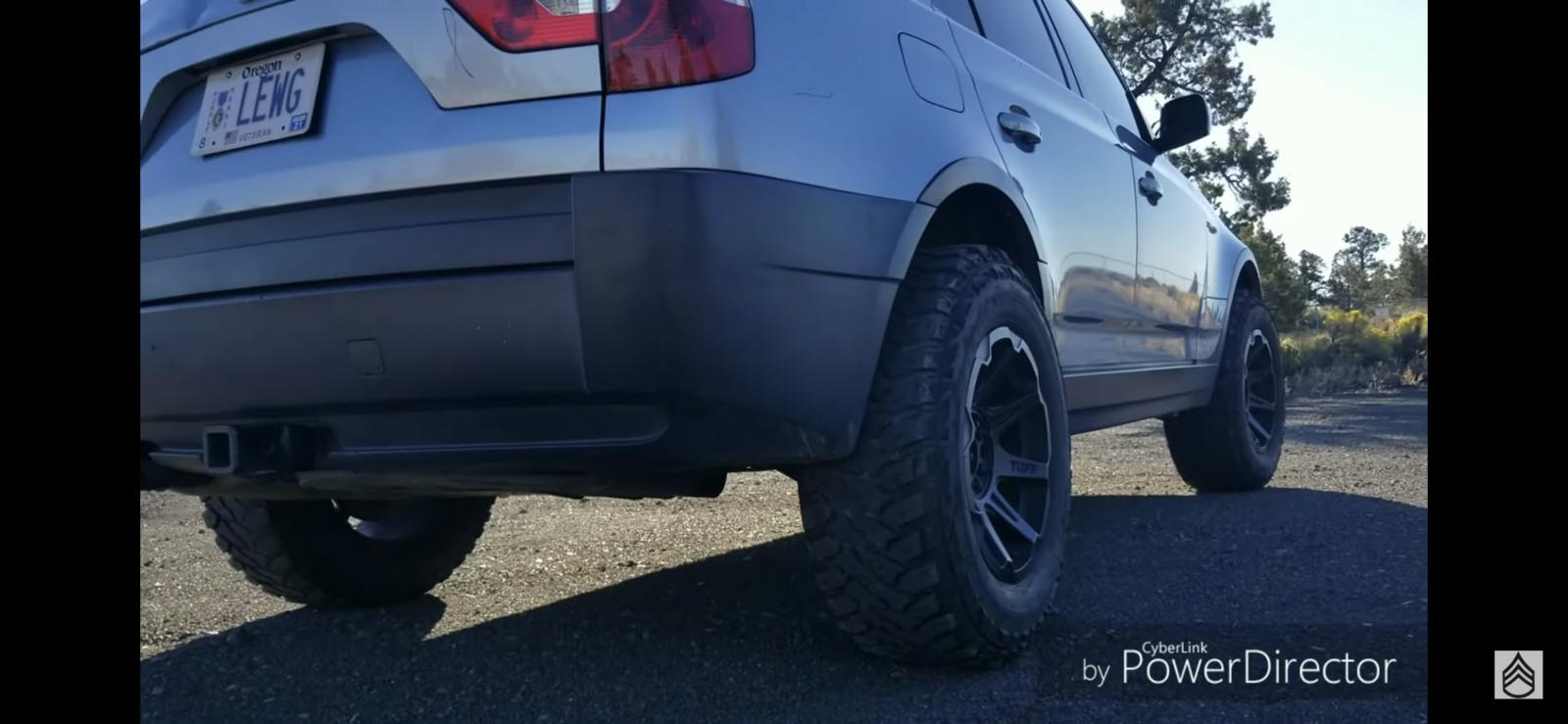 Tuossa ihan mukavan näköinen X3 itemodatulla jousituksella ja 265/70R17 renkailla (32”).