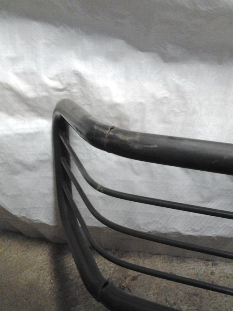 Aikaisemin ollut kiinni ilmeisesti jossain vähän leveämpi keulaisessa autossa ja jouduttu levittämään reunoja leikkaamalla mutkakohdista.