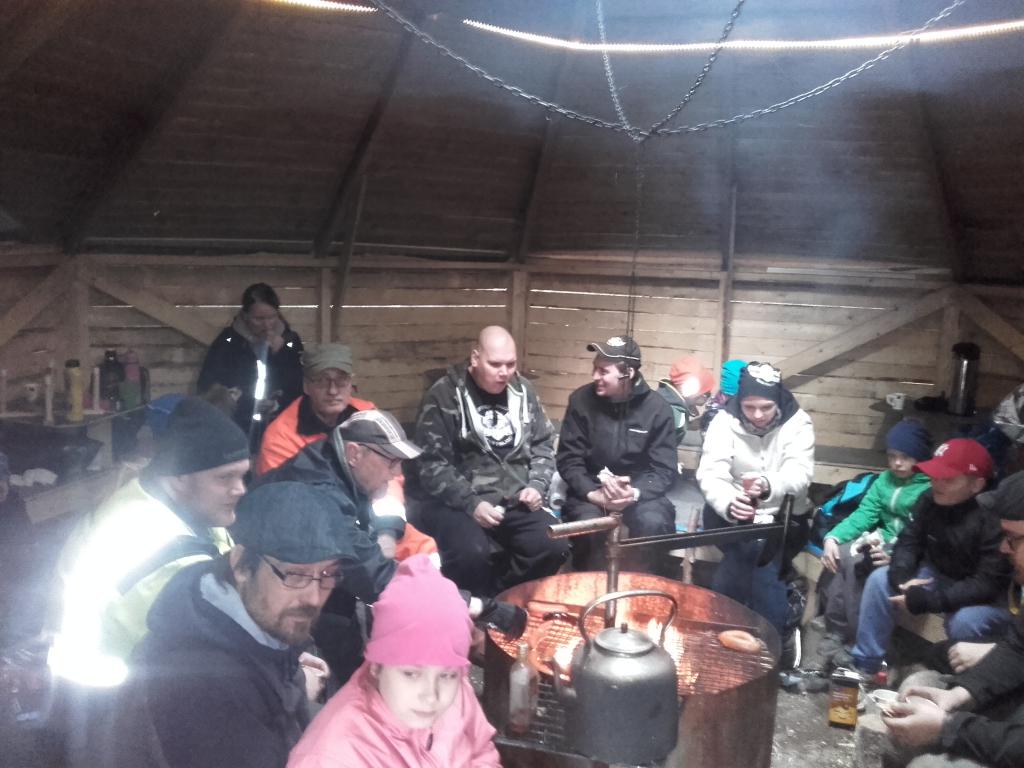 Varikko löytyy tutusta paikasta eli portin jälkeen oikealle ja sinne konttien jälkeiselle tasaiselle alueelle parkkiin. Kodalla kahvia ja makkara tulet.