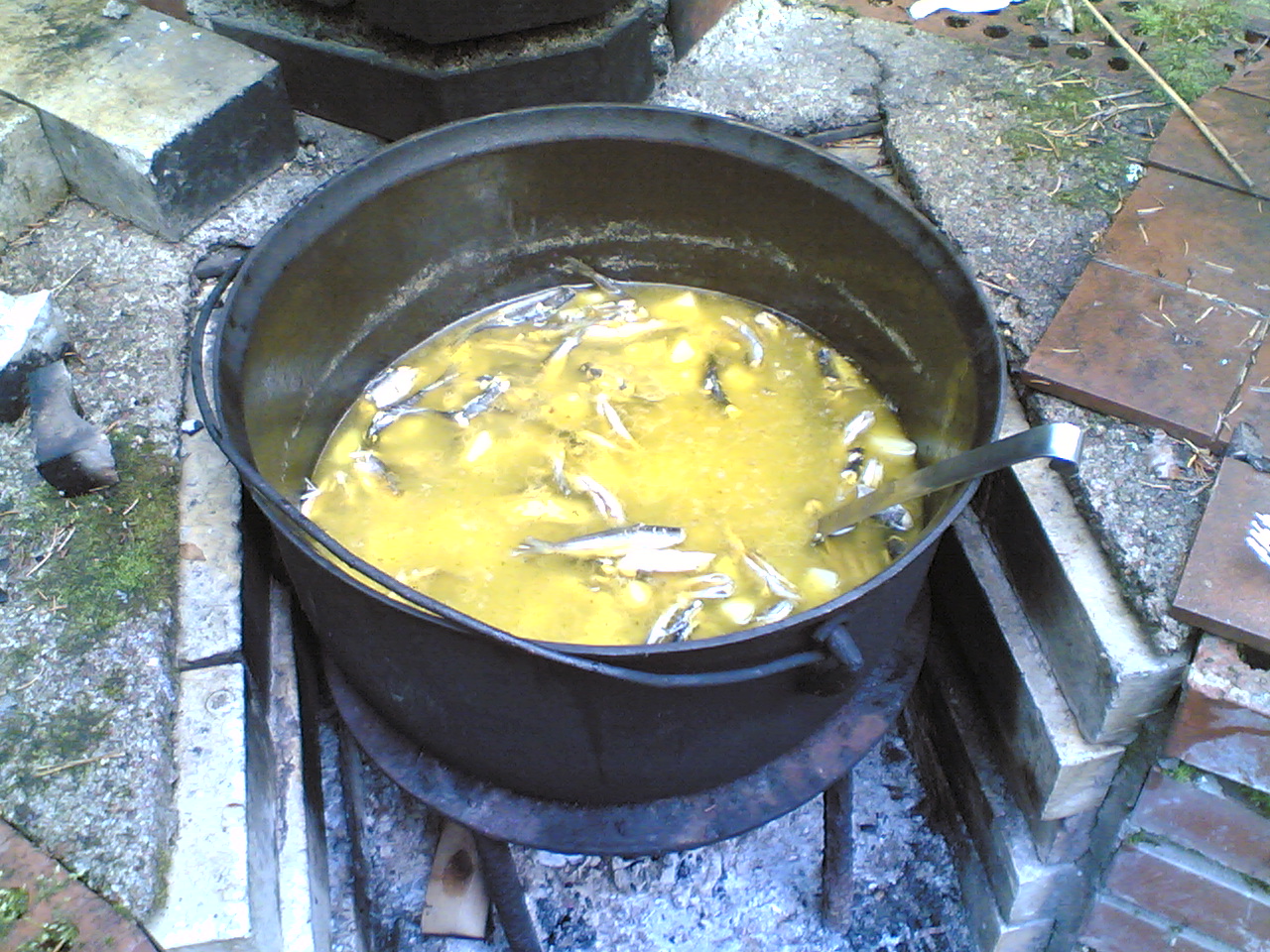 |   Siinä lähtökohta. Halkeamat avattu. Melkein kaikki hitsattu. Mustalaisleiri muuttaa taivaaseen? https://fi.wikipedia.org/wiki/Mustal...taa_taivaaseen Laitoin tänään kaksi rautakankea ristiin rastiin, ja rautalangalla kiinni toisiinsa. Pata roikkumaan, jälleen kerran rautalangalla. Tulet alle, ja 10 litraa vettä pataan. Hmm, tihkuu allensa. Heitin veden sekaan kourallisen vehnäjauhoja, niitä kun löytyi keittiön kaapista. Thürmo jauhe pitäisi varmaan paremmin, mutta voipi jättää jännän sivumaun. Tunti keittelyä, eikä näy vuotavan enää? Ehkä ensi viikonloppuna tuolla saa kalasopat tehtyä.