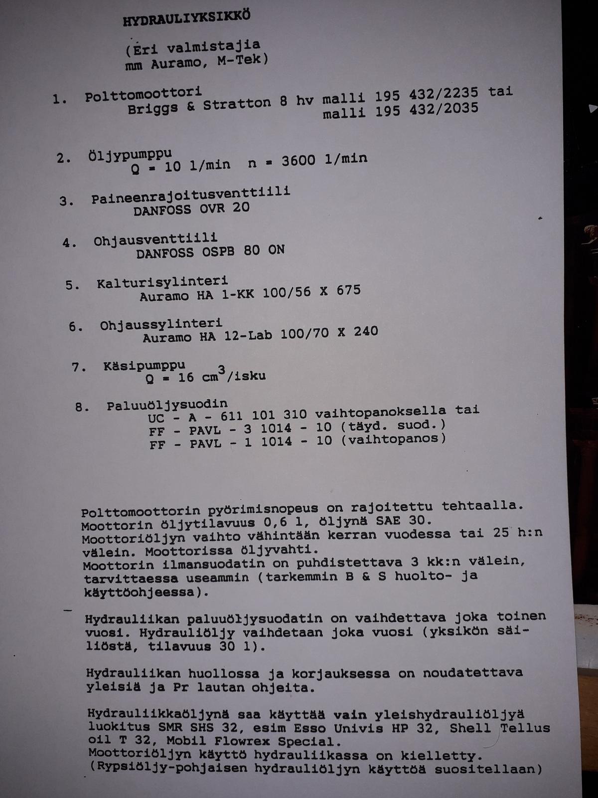 Kevätmyynnin kunniaksi hintaa alennettu reilusti hydrauliyksikölle. Toimii siis polttomoottorilla.