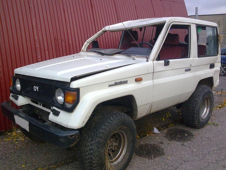 Toyota LJ-70 2,4td kaadettu -varattu-Myyty Myydään kilvissä oleva ja katsastettu LJ,mittarissa 330tkm, kipattu kyljelleen ja siitä katolleen, apparin A-pilari lytyssä, koko kato kärsinyt, osaava kaveri oikoo, kuvat kertoo enemmän edessä napalukot ja alla jotku 33" renkaat, elämää nähneet, verot ja muut maksut maksettu nopemmalle soiva peli!!! Myyty