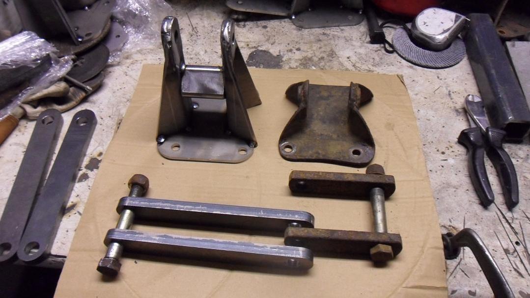 Purkasin takaperän irti ja suunnittelin uudet jousien kiinnityspalikat, etu ja takapää näyttäisi kuitenkin olevan samoilla palikoilla rakennettu. Takaiskarien yläpään kiinnitystäkin pitää samalla muuttaa. Osat teetin paikallisessa laser-leikkaamossa särmättynä, hitsasin nippuun ja nyt vain väriä pintaan.... |
