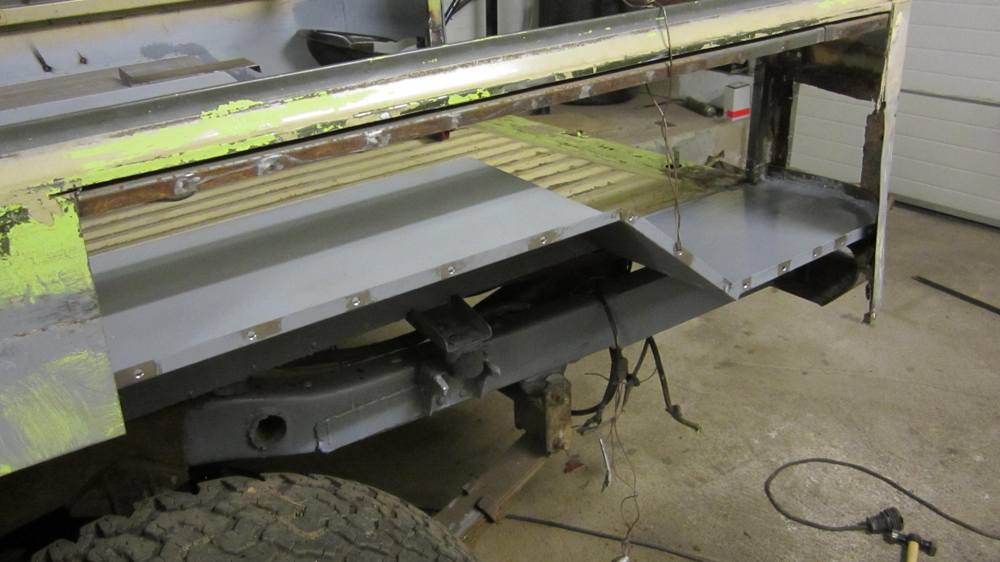 Nyt tuli taas hiukan valmiimpi kun sai sisäpuolen pellit saumailtua ja pysty lyömään viimeisen iison siivun takalokylkeä paikalleen,,