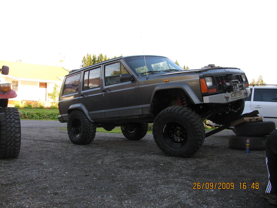 "KAKI" uuteen nousuunrunnerin lähdettyä taipaleelle pihaan ilmestyi kuvan kaunis 91 vuoden cherokee hetken mielijohteesta.edullinen hinta houkutteli ja kun visioita rupesi lentämään enemmän kuin finnairin koneita niin katsotaan mitä tästä nyt sit tulee vai tuleeko mitään.karmea nimi kaki jountaa juurensa työkaverin väläytykseen kilpeen perustuen,kiitos silverille! kinnerin pitäisi ruokkia myös käyttöauton virkaa niin ei aivan mahottomiin voi mennä,toistaiseksi. heti tlattiin RoughCountryn 3" korottava setti ja kunhon kl-71 renkaat kokoa 33/12.5-15.vanteita ei vielä ole kun koko tai pikemminki ET mietinnässä.vinssi jo kovasti menossa keulaan,palkkipuskurin kera,vaiheessa. alustakin tuli ja meni myös paikalleen kahden miehen hillittömän ähkimisen jälkeen.pultit oli mielettömän tiukassa takajousilla,ei meinannut lämpö,lyönnit ja crc auttaa ollenkaan.10 tunnin tappelun jälkeen saatiin auto takasi pyörilleen. itselle nää jeepit on vielä vierasta aluetta joten kaikki vinkit yms on tervetullutta. jatkuu....