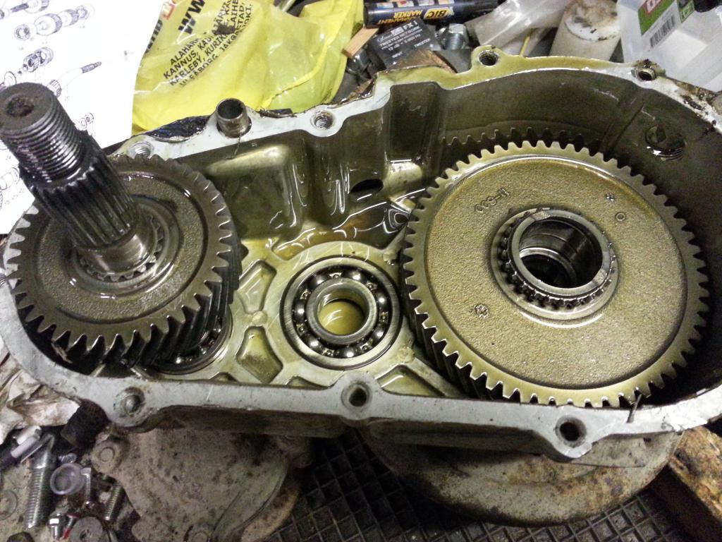 Jakoaskiin on soviteltu tossulaisia välityksiä. Mukavan yksinkertainen laatikko. Vähän hitaampikin yksilö pystyy tekemään suuremmankin rempan.