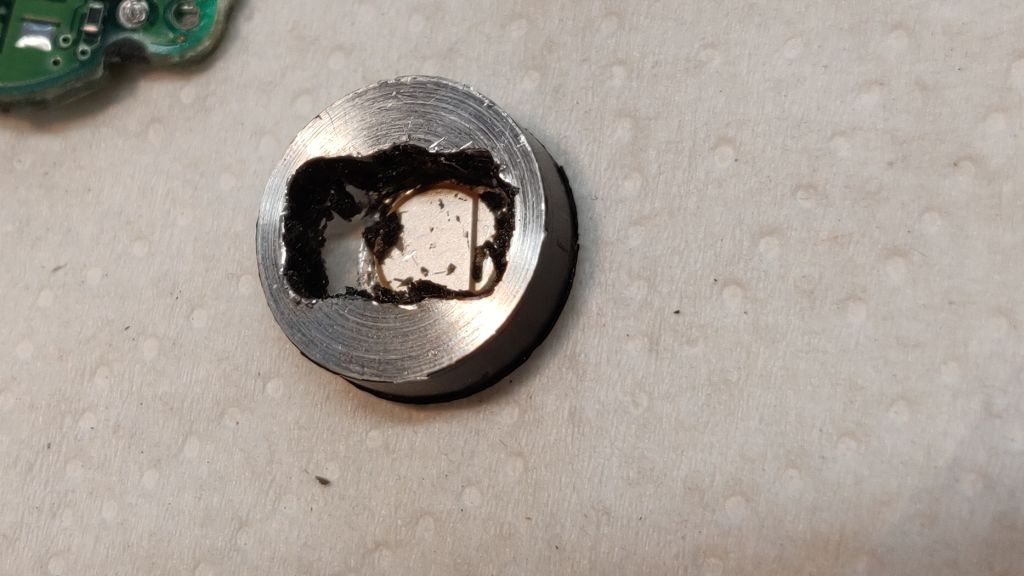 Tuli vielä tutkittua itse transduuceri nappia. Sorvilla oli helppo "purkaa". Oikeastaan ainoa yllätys oli kuinka paksu kalvo eli etuseinä napissa on. Toista milliä alumiinia. Tämän takana on sitten Piezo elementti millä ääni tuotetaan ja kaikuja kuunnellaan.