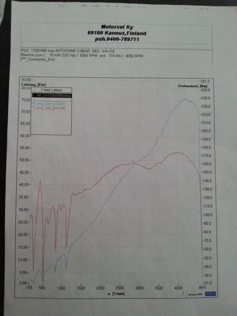 hilux ohjaustanko, turbotusToyota hilux ln110 89v garret t04 Auton koria korotettu +70mm ohjaustankoon tehty edellisen omistajan toimesta oma patentti. Katsastusmies ei hyväksynyt kun kävin tänään näyttään. Mitä sille kannattaa tehdä että saisi läpi meneen ? Samalla oli myös muutoskatsastus turbolle ja välijäähdyttimelle valitti penkkilapusta että pitäisi olla tehomittauksessa tieto ahtopaineen kehityksestä LÄPI kierrosalueen. On se tarkkaa *****. Turbolla on ulkoinen hukkaportti ja sielä on 0.9 bar jousi tehot oli penkissä 103hp 174nm. Penkki todistuksessa myös lukee mitattu ahtopaineen määrä.