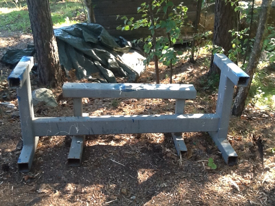 Teräksiset venepukit, isompi ja pienempi. Sopii loiva-V-pohjaiselle moottoriveneelle. Toinen pukki eteen kölin alle ja toinen taakse tukien paattia pohjasta sivummalta. Keskelle voi sitten laittaa kölin kohdalle pienen tuen. Miehen kannettavia, painaa alta 30 kg kappale. Menee farkun takakonttiin (ehkä,en oo testannut)