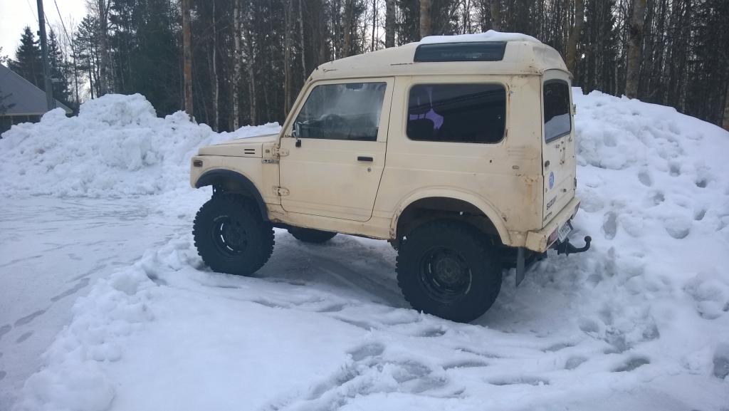 Suzuki 413 1000€Myyty Tuommoinen ruma ja lommonen muttei kuitenkaan laho.Soa akselit, raidetankoon tehty mutka hitsaamalla. Kilvet paikallaan, juu ei ole leimaa, paperit on. Kone käy nätisti Myydään vakio renkailla. Auto Torniossa o5o3356806 1000€ tarjotakkin saa Myyty