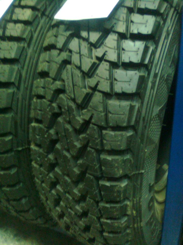 kymmenisen vuotta sitten renkaat oli todella edullisia, isälläni tuotin Sortavalasta 235/75-15 kumit. Ne oli kyllä karkealla pinnalla ja oli nastan kohdatkin laitettu vaikka kumissa ei ollut mitään M+S merkkejä. Pyörivät yllättäen ihan tasaisesti.