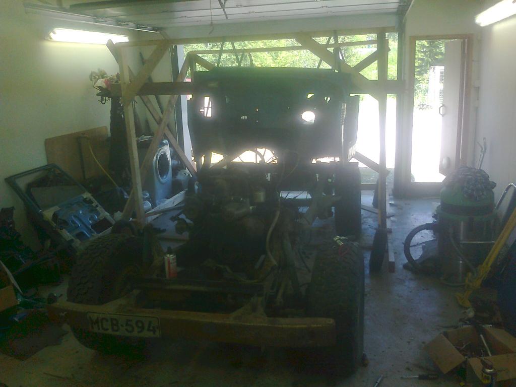 Metsurille BJ40Noniin aika kertoa tehdä omastakin tälläinen kertomus. Eli kävin hakemassa vähän ennen juhannusta BJ40:n vuodelta -79. Kotiin tullessa työnsin talliin ja arvelin että vähän pientä pintaremonttia teen ja katsastan. Toisin kävi. Auto oli seissyt pitkään ladossa ja akut paikoilleen, testikäynnistys ja ekalla hörähti käyntiin kuin palmun alta Pikainen testaus että kaikki toimii ja eikun osiksi. Tästä lähdettiin: Purkamista ja purkamista Rakensin pikaisesti tuollaisen paskan häkkyrän jolla sain korin pois rungosta ja työnnettyä tallista pois. Sehän toimi ja itsestään onnistui kaikki ![]() Siinä ois runko ja moottori. Seuraavaksi kaikki loput irti että pelkkä runko jää. Tästä lähdettiin: Mätää peltiä takalehtien etukorvakoiden alla molemmilla puolilla, ja paljon: Tässä vaiheessa riistäytyi mopo ihan käsistä ja revin sisärungon irti lähempää tarkastelua varten Toisen puolen korjaus heppailtu paikalleen, rupesin olemaan sen verta pöpelissä että pistin hitsauskoneen kiinni ja odottamaan selvää päivää ![]() Paremmalla ajalla tehty: Toinen puoli: Projekti on näistäkin vielä edennyt mutta Iphone tehny kuvien siirtämisen mahdollisimman hankalaksi niin kunhan joudan niin laitan lisää kuvia projektin etenemisestä. Tarkoitus on siis entisöidä runko sillälailla että kestää. Kaikki pelti joka alittaa alle 4mm niin menee vaihtoon. Ei onneksi paljoa ole. Nämäkin johtuu siitä että peltiseppä laittanut ohutta peltiä sisärungon paikaksi nuiden korvakoiden tienoilla. Tietäähän mitä siinä käy Itse korvaan alkuperäisillä vahvuuksilla ja saumat puskuun! Onneksi revin sisärungon pois kun paikkapaikoin rauta oli syöpynyt 1.5 milliseksi Eipä olisi hyvin kauaa kestänyt.