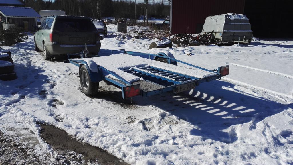 traileriMyydään / Vaihdetaan Siisti kuntoinen ajoneuvokuljetus traileri.Valot uusittu Uudet kesä ja talvirenkaat Viimeinen katsastus päivä 2.1.2018 Eli leima löytyy Tukevat rampit. Sisämitta 1.6m levee ja 3.3m pitkä Koko pituus 4.7m ja leveys 2.0m Omapaino 280kg ja kokonaismassa 1100kg Hinta 1300 Loppi Kuvat tulossa. Hyvä esim.mönkkäri hommiin Vaihtoa esim. Pikkumaasturiin jne Myydään / Vaihdetaan