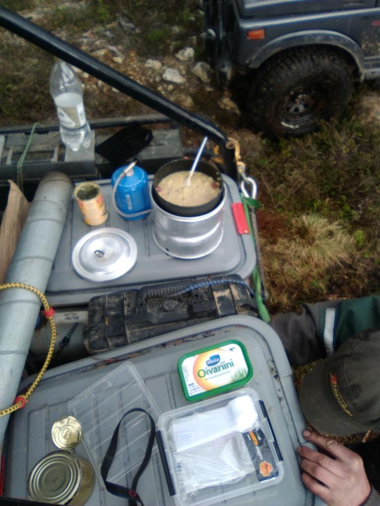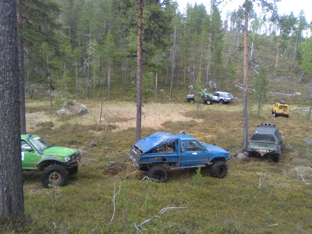 LaMaas offroad , matka tuntemattomaan.Vähän tarinan tynkää reissusta pohjois suomeen . tovin aikaa porukalla mietittiin että miten olisi kesäloma reissu pohjois-suomeen. Tuumasta toimeen ja ivalon hurjille soitto että jokos on luvat voimassa reiteille ja muutaman päivän odottelun jälkeen tuli ilmoitus että tänne vaan. oulusta oli lähtö 1.6 klo 08:00 tupos abc pihalta, osa letkasta keräiltiin ensin iistä mukaan ja loput poimittiin mukaan kemi-rovaniemi väliltä. Seuraava pysähdys etappi oli käyrämön keidas, pitäähän sitä syödä että jaksaa. Mahat täynnä jatkettiin matkaa kohti sodankylää jossa tavattiin tuttua offi porukkaa ja jutuille uskaltautui vähän muitakin offareita kun oltiin parkissa. Sodankylän neste ![]() seuraava pysähdyspaikka olikin sitten saariselän neste johon oli sovittu kokoontuminen paikallisen offi porukan kanssa , letka uudestaan kasaan ja viemään kuljetuskalusto pois, sen jälkeen pakattiin kamppeet autoihin ja suunnattiin metsän siimekseen. ![]() seuraavaksi oli siirtymää joka oli kovaa kangas maata ![]() ja sitten päästiinkin jo ensimmäiselle märälle spotille ![]() ![]() seuraavaksi oli nousu Kuusipään tunturin huipulle ![]() ![]() Huipulle päästyämme piti tietysti ottaa ryhmäkuvaa ja ihastella mahtavia maisemia, tovin aikaa huipulla oleskelua ja sitten päätimme jatkaa matkaa leiripaikkaan nro 1. matka jatkui tunturin laella käkkärä koivuja kierrellen ristiin ja rastiin, matkalle osui pieni puron ylitys ja sitten oltiinkin jo perillä kodalla. ![]() ![]() seuraavaksi olikin ohjelmassa seuraavan päivän ajo psikkojen katselua kartalta ja tulien teko, ilta kuluikin mukavasti paikallisten offi miesten kanssa rupattelua ja tietysti ruoka hommia ja leppoisaa illan viettoa. päivä nro 2 pikku hiljaa kun porukka saatiin hereille ja aamupalat syötyä päätettiin pakkailla reput autoihin ja lähteä reitille. letka kasaan ja suunnistamaan ![]() siirtymät olivat 90% kuvien mukaisia sorateitä ![]() ![]() ![]() Pikku hiljaa alkoi myös löytymään märkää spottia ![]() Märkää ylämäki jänkää ![]() ![]() välillä meinasi olla hankalaa löytää karttaan merkittyä jälkeä, aikasemmin jo ajettu mutta jäisenmaan aikaan. ![]() ![]() Nälkähän siinä tuli kun koko komppania jalkautui moneen kertaan etsimään jälkiä, ensimmäinen tien ylitys tuli vastaan ni pakkohan se oli tulet tehdä ja vähän evästää kun ei ollut mihinkään kenelläkään kiire ![]() ![]() ja myöhemmin matka jatkui ![]() Kotkakin kävi kattelemassa että ketäs täällä pörisee metsän siimeksessä,asumattomassa kairassa. ![]() sinisessä hiluxissa oli koko päivän ollut kumma kolina joka kuului aina vähän väliä, tuumattiin että ajetaan vika ulos ja korjataan sitten, no jakolaatikkohan siellä oli revenny rungosta irti. ![]() Kuvia oli remontista enemmänkin vaan ne hukkui johonkin bitti avaruuteen latauksen aikana. remonttihan onnistui helposti, paavo oli onneksi ottanu maasto migin mukaan mikä toimii 24 voltilla, inventteristä rälläkälle virtaa että sai paikat puhtaaksi ja korvakko takaisin hitsillä paikalleen. sen jälkeen jatkettiin soratie siirtymää kohti uutta pistoa, pienen suon ylitys ja takaisin metsän siimekseen ![]() ![]() Välillä löytyi myös märkiä paikkoja, kiertopaikkojakin löytyi tarvittaessa melkein kaikissa märissä paikoissa eli reitit soveltuu myös 33" renkaille ja ei niin paljoa korotetuille autoille. ![]() ![]() ![]() ![]() Reitiltä löytyi myös mukavia vesi paikkoja ![]() ![]() Puoli märkää nevan ylitystä ![]() Nähtävyyksiä reitin varrelta ![]() leiri nro 2 pystytys. ![]() ![]() ![]() ![]() teltta sauna taustalla lämpenemässä. Tarina jatkuu heti kun saan laitteeseen lisää virtaa.