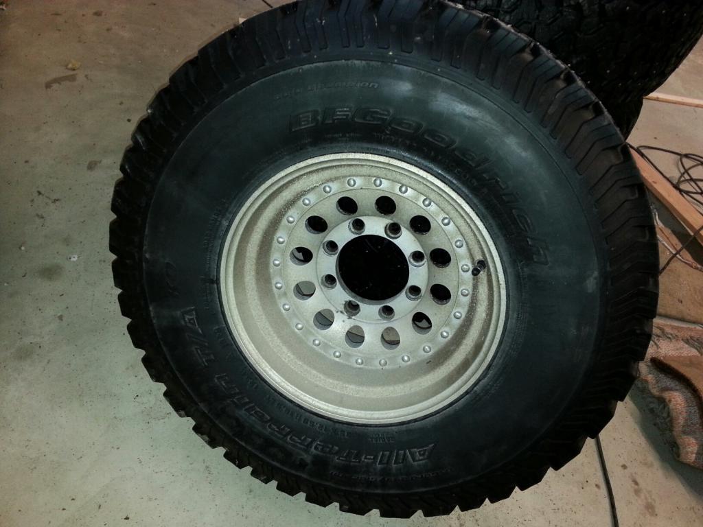 BFG A/T 35" + 8x165 vanteetMyydään Myydään BFG A/T 35x12,5x16,5 renkaat + 16,5x9,75 alumiinivanteet.Renkaat nastoitettu, pintaa 8-11mm (mittaan tarkemmin kun käyn tallilla), en oo ainakaan huomannut että olis paikkailtu. Hyvät ajoltaan eikä suuremmin pompota. Vanteet hyväkuntoiset ja suorat, kiillottamalla suorastaan komeat. ET / backspace ei tiedossa, jokatapauksessa levittää hieman ulospäin (ET vois olla n. -20). Jako 8x165 eli käy Chevy,GMC,Dodge ja vanhemmat Fordit. Mulla olleet K2500 Suburbanissa, sitä ennen H2 Hummerin alla. Kuvissa renkaat/vanteet likaiset, eli ei ole pesty. Sijainti Lahti/Hollolla Hinta: 700€ tai jotain mielenkiintoista tavaraa. 0440-301 487 tai tuomo.virtanen@marakon.fi Myydään Viimeksi muokannut Tuomo : 02.01.2015 15:51 Perustelu: kuvia |