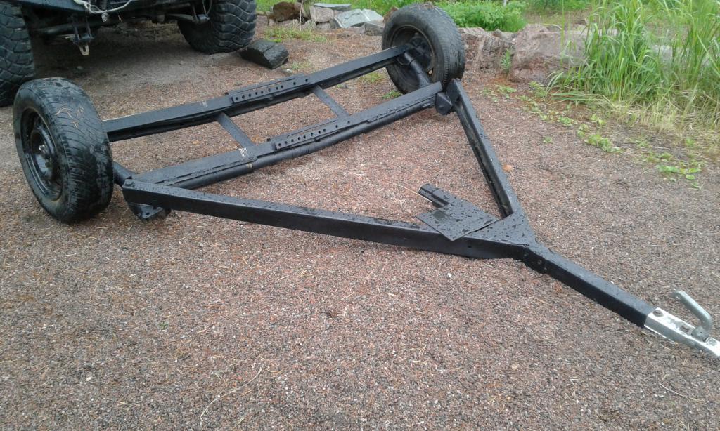 Dolly! MYYTY!Myyty MYYTY!....hyvään 250e hintaan!.... Jonkunvetolaite dolly. Sis leveys n.190cm. Saranoitu aisan ja ajopukin sauma. Mukaan toiset renkaat aluvanteilla! Vaihdossa kelpaa perämoottori 5-20hv. 250e......Tällä on vedetty transportteri Suomen halki,joten jotain sillä pystyy vetämään!!!!