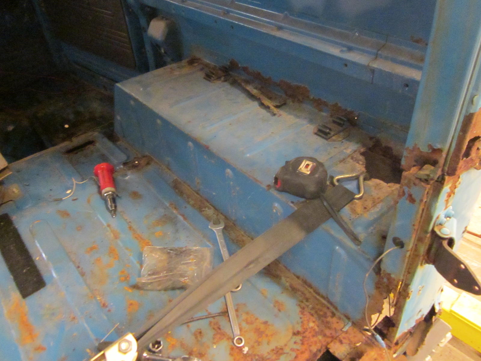 Sitten iskettiin lonkan kimppuun. Piirsin lonkkaan leikkuurajat ja poralla hitsipisteet auki. Ennen suolistusta tietenkin piirsin mallin lonkasta paperiin. Sisälle autoon laitoin tukia ettei homma romahtaisi käsiin,vaikka koppa oli levennyt joka suuntaan... ja tämä vaikeutti kaikkea, kun ei ollut mistä mitata ristimittaa minnekkään. Nooo sitten laikka laulamaan ja poski irti.