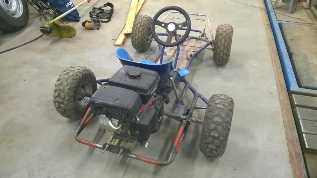 100cm akseliväli. Leveämmällä penkillä mahtuu 175cm ajamaan. Polkimien siirtosarjalla aika nuori yltää. Oma poika 150cm ja kohtuu sopiva. Itsellä oli ajatuksena laittaa joku 4t vehkeen kaasari tuon regun tilalle niin alkaisi kiertääkin paremmin. |