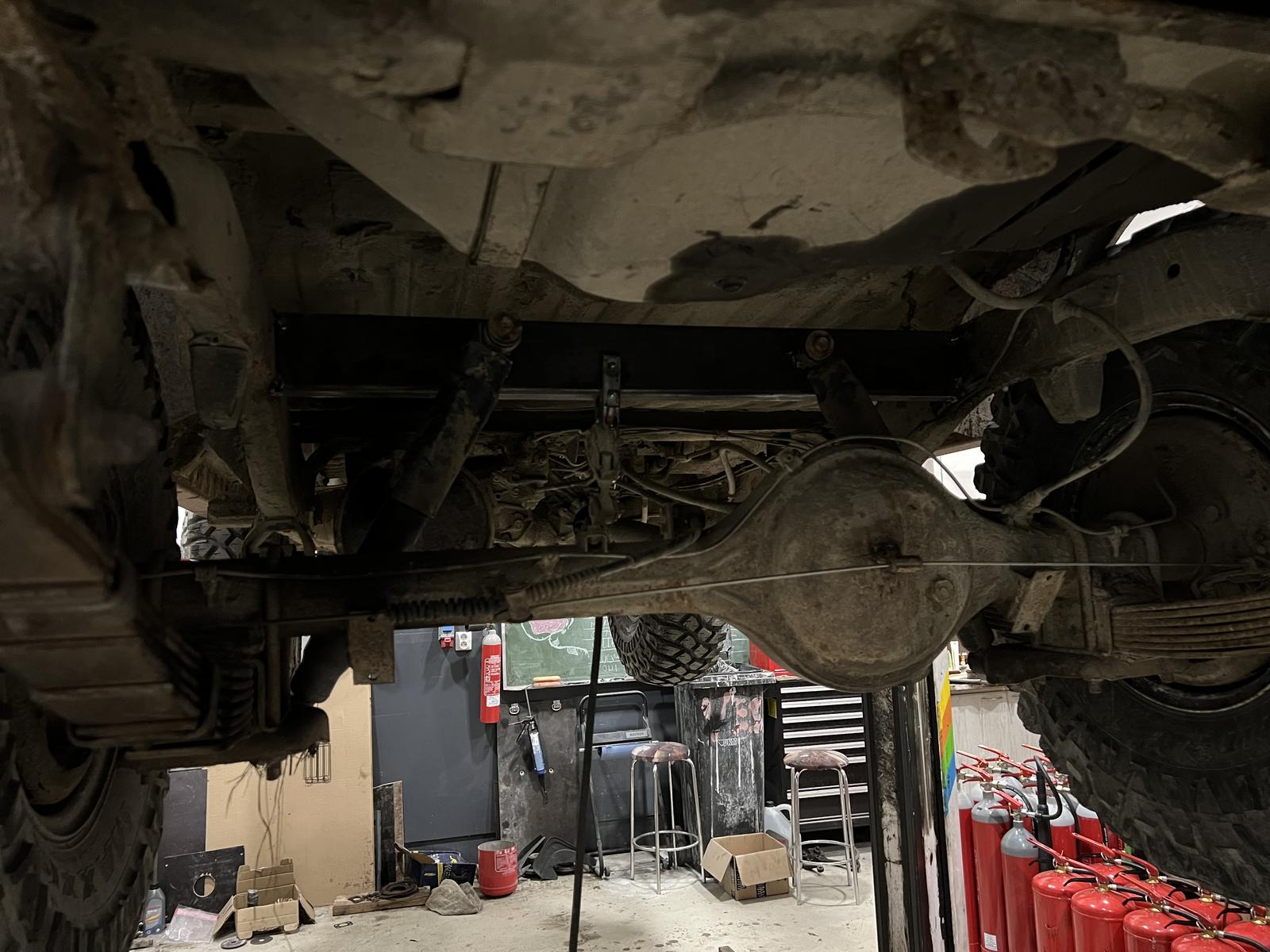 Huomasin tuossa että melko kovasti kolahtaa kun ajaa hidasteen yli. Syyllinen löyty myös kun käytin nosturilla auton. Korjasin sitten vian rhs putkella. Tuo valmiin tuotoksen kuva on vähän huono.